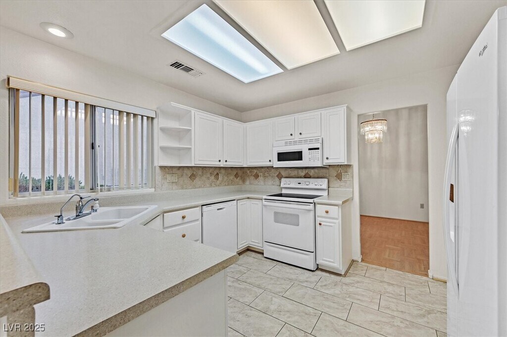 Nestled in the Heart of Sun City Summerlin! Step Through the Gated Court Yard into this Clean Townhome, with Vaulted Ceilings Filling the Home with Natural Light. Looking Outside at a Relaxing Shaded Covered Patio. Walking through the Formal Dining Area into a Big Kitchen with Breakfast Counter and Separate Dinette space Surrounded by Windows to View the Wonderfully Manicured Sun City Landscaping. Primary Bedroom with Large Walk in Closet and Skylight over Shower. 2 car Garage with Storage Cabinets and Golf Cart Parking. This is a courtesy listing, all questions will be directly with owner. Call/text/email me for connection with owner