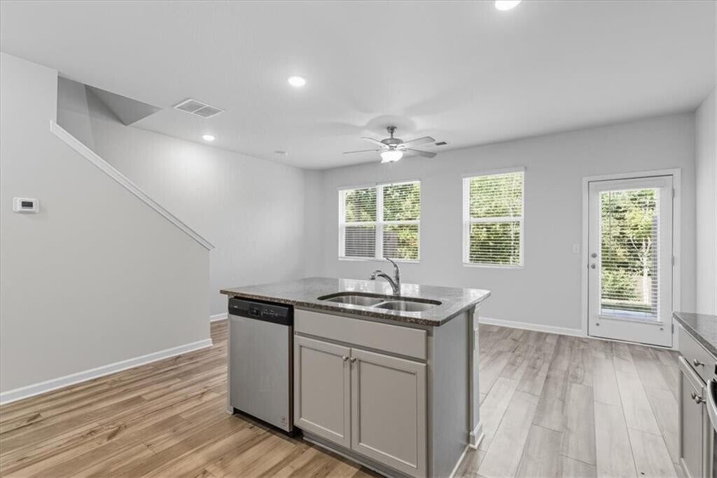 Built in 2022,freshly painted and ready to move in. A beautifully maintained 3 bedroom,2.5 bath townhome in a charming,quiet community. Home has spacious foyer that flows into the dining area and a modern kitchen with 42” gray cabinets,crown molding,stainless steel appliances,granite countertops,a subway tile backsplash,and an island perfect for entertaining! The open floor plan connects seamlessly to the family room,creating the ideal gathering space. Upstairs,the owner’s suite offers a large bedroom with a large walk-in closet,dual vanities,a soaking tub,and a separate shower. Two additional bedrooms share a full bath. All bedrooms are conveniently located near the hall laundry room. Enjoy outdoor living on the oversized patio—great for grilling,relaxing,or hosting friends. Recent updates include a new storm door,and peace of mind comes with a transferrable 2-10 Home Buyers Warranty plus a hard-wired Brinks Security System. Two assigned parking spaces included. Best of all—NO rental restrictions or rental caps,making this a fantastic home or investment opportunity! Located minutes from shopping,dining,parks,highways,and less than 20 minutes to Downtown Atlanta. MLS ID 7708904