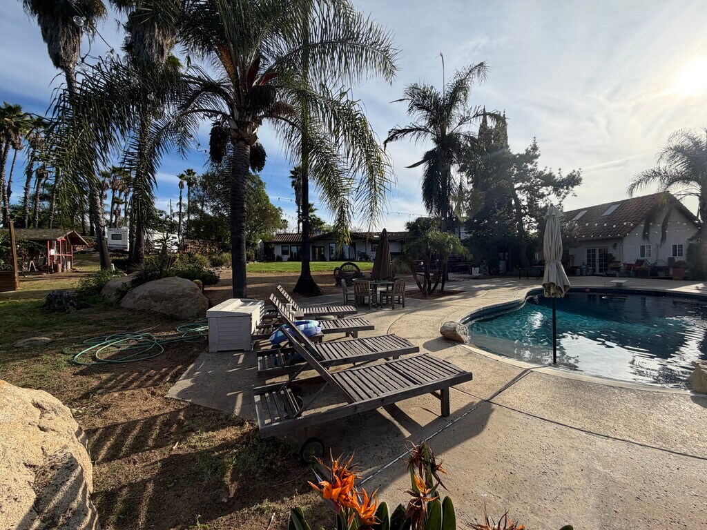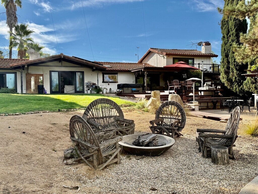 Experience Country Living in this Exceptional 3-bedroom, 2-bath home, 2,800 sq ft of living space on 1.5+ private acres.+ Separate Guest House- Mother-In-Law Quarters- +/- 450 Sq. Ft. Located on a Quiet Plateau within a small 20-home Private Community, the property offers Views of Valley Center, Palomar Mountain, and on clear days Mt. Baldy. More than a residence, It is a Peaceful Retreat, thoughtfully designed and lovingly maintained over many years. Interior features include: 1) Two wood-burning fireplaces (living room, library/upper family room, kitchen/dining) 2) Spacious kitchen with abundant cabinetry and two pantries 3) Library or upper family room ideal for reading, work-from-home, or relaxation 4) Smart home security cameras 5) Comfortable, functional layout ideal for family living or a professional couple 6) Convenient south Valley Center location with easy access to I-15 Outdoor amenities include: 1) Approx. 1,000 sq ft partially covered deck 2) Swimming pool, spa, fire pit & built-in BBQ 3) Basketball hoop area and rose garden 4) Chicken coop, garden area, fruit trees 5) Horseshoe pit and private walking labyrinth 6) Mature trees & Fruit Trees and a water feature attracting abundant bird life 7) Often referred to as "Richards Resort & Retreat,” this rare property offers privacy, peace, and space, while remaining close to town amenities. 8) Auto/Smart Sprinkler System MOTHER-IN-LAW Quarters w/ Full kitchen & Bathroom is included: 450sq ft +/-. Separate entrance Ideal for home office, Relative, guest space or exercise gym. Bi-Weekly Landscaping and Weekly Pool Service Included