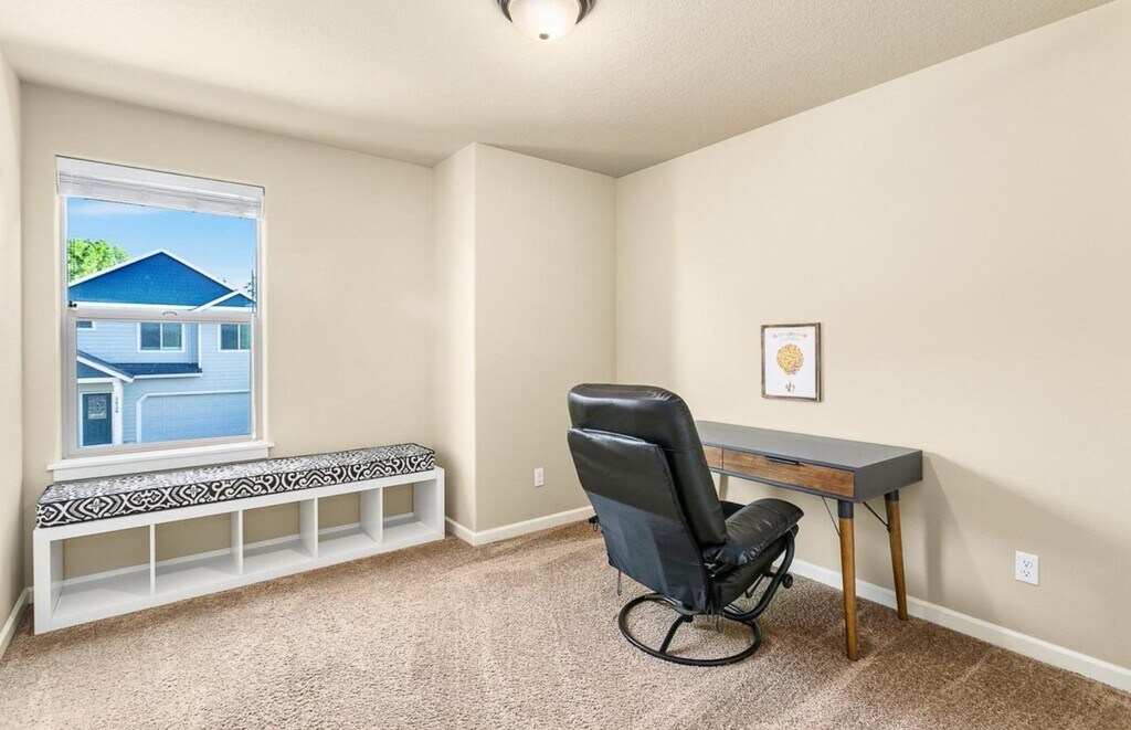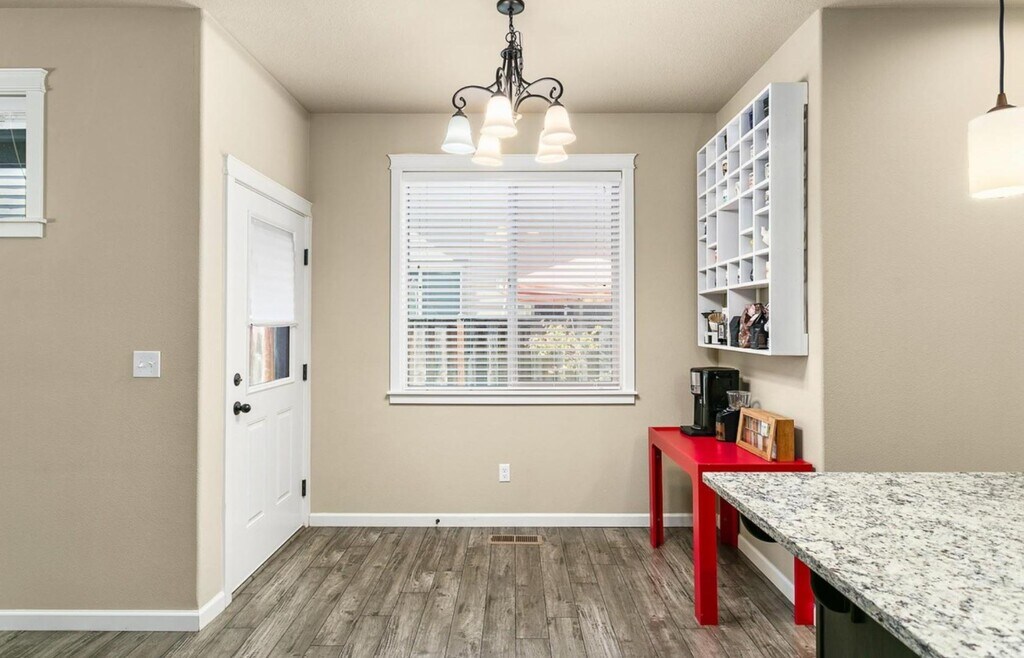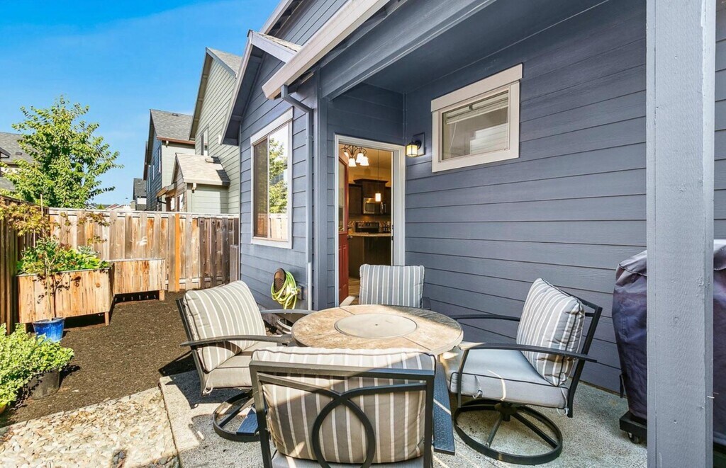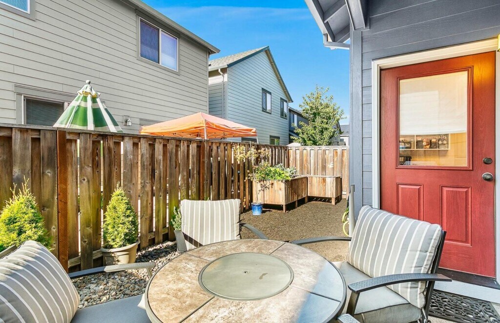 This splendidly kept residence in Forest Grove exudes a fresh, just-like-new ambiance, making it impeccably move-in ready. It boasts an expansive, open-plan great room adorned with durable laminate flooring that effortlessly transitions into a dining area. The kitchen is a culinary enthusiast's dream, featuring sleek granite countertops, stainless steel appliances, and a convenient pantry for ample storage. The master bedroom is a private sanctuary, complete with soaring vaulted ceilings, dual closets for ample storage, and an en-suite bathroom equipped with a walk-in shower. This home also offers two additional, generously sized bedrooms, ensuring plenty of space for family or guests.Outside, the low-maintenance backyard is a haven for relaxation and entertainment, offering a covered patio perfect for al fresco dining and leisure. Additionally, raised garden beds await those with a green thumb looking to cultivate their own vegetables. The location enhances this home's appeal, with