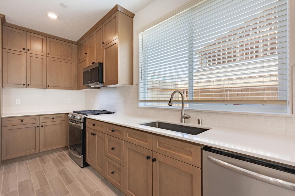 Beautiful open floor plan patio home Main floor offers large kitchen, living and half bath with access to patio Second story has 3 bedrooms, 2 baths and a large laundry room with extra storage Very airy and bright with the natural light 2 car garage via alley access