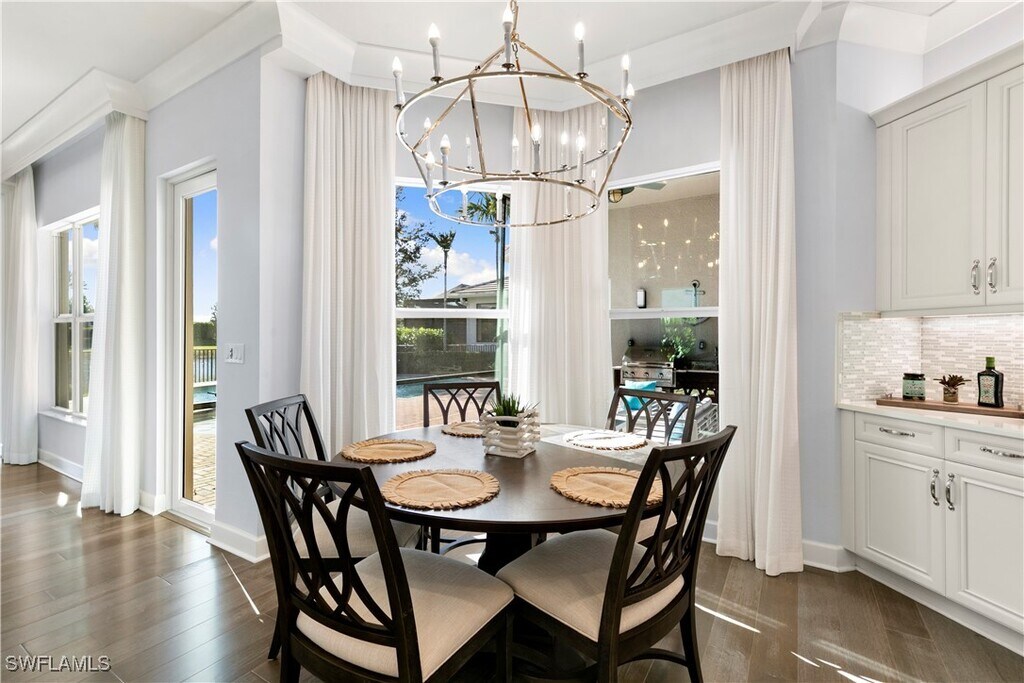 **minimum rental period of 7 months** Prepare to be captivated by this fresh-to-market former Charleston Grande decorated model by GL Homes,an unparalleled opportunity to acquire a residence on Valencia Bonita’s most prestigious "model row",a turnkey piece of real estate that secured the esteemed Superior Home Award,and where brand-new quality meets design-forward living. Step into a space curated by professional designers,featuring furnishings so new that many still have their original tags—meaning you can enjoy the prestige and perfection of a decorated model from day one. The impressive layout features three bedrooms,a large bonus room/den,and an abundance of differentiated space,including a sitting room,formal living room,breakfast room,and formal dining room. Throughout this award-winning residence,discerning eyes will appreciate the superior craftsmanship,notably the detailed woodwork,including striking coffered ceilings,custom wainscoting,and accent walls that define the home's high-end aesthetic. The property’s ultimate private retreat awaits outdoors. The screened lanai hosts a desirable summer kitchen and a comfortable seating area,leading to an open lanai with a custom pool,sun shelf,and a coveted private backdrop overlooking a serene lake and lush landscaping—ensuring tranquil views and premium privacy. The master suite offers a sanctuary of convenience and quality,appointed with electric shades and custom closet systems. This is your chance to secure an architecturally significant,move-in-ready home that offers both the status of model row living and the absolute assurance of new-build excellence. Community Life: Exclusive Valencia Bonita Amenities Life at Valencia Bonita extends far beyond your beautiful residence and offers an extraordinary,directed 55+ lifestyle. Homeowners gain exclusive access to the state-of-the-art 45,000 sq. ft. Clubhouse,the epicenter of social activity. Enjoy exceptional dining with both indoor and outdoor options,notably featuring NO Food and Beverage minimum—a significant financial advantage! The vibrant social calendar is managed for you,offering over 50 active clubs to join,dedicated creative spaces like a cooking studio and pottery/art program,plus a comprehensive schedule of fitness classes. For the active resident,the racquets program is robust and acclaimed! With a dedicated pro shop,Valencia Bonita supports competitive traveling teams for tennis and pickleball,alongside programming for all skill levels,ensuring that whether you're seeking competition or "fun over winning," this community perfectly matches your active interests.