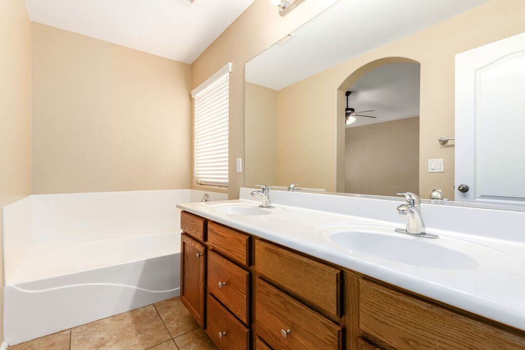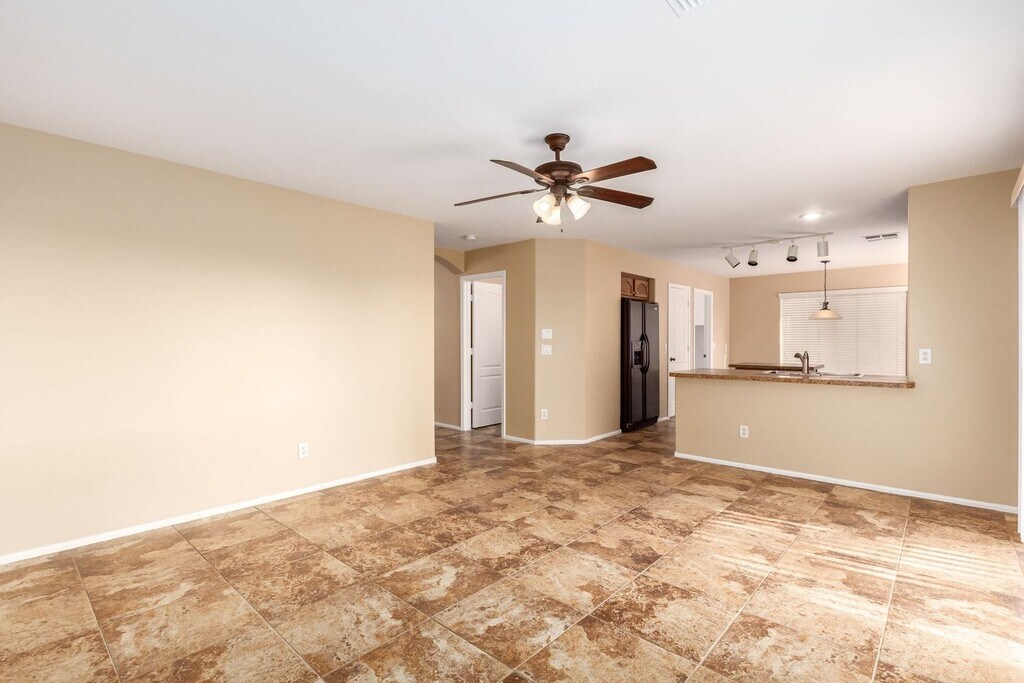 This spacious 4-bedroom, 2.5-bath home offers nearly 2,000 sq. ft. of comfortable living space. Featuring fresh two-tone interior paint, 18-inch tile throughout the downstairs, and brand-new carpet — this home is move-in ready! Enjoy an open eat-in kitchen with a walk-in pantry, a family room, and formal living and dining areas — perfect for entertaining or relaxing. Upstairs, you’ll find three nicely sized secondary bedrooms and a large primary suite with two closets and a separate tub and shower. Additional highlights include upgraded interior doors and hardware, 2-inch blinds throughout, a covered patio, and a spacious backyard that backs to a wash and custom homes — offering extra privacy and beautiful views. Residents of Johnson Ranch enjoy incredible amenities including two heated community pools, a golf course, 13 parks, walking paths, and fishing lakes — something for everyone to enjoy! Contact Kelly Harrell @ Applications online @ Arizona Elite Properties .com
