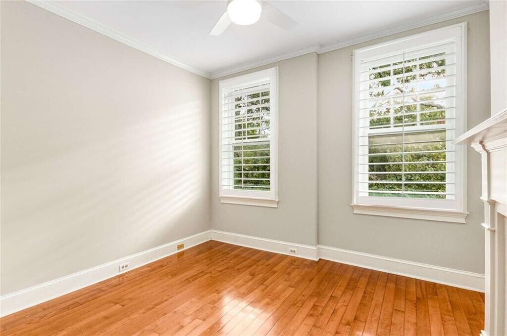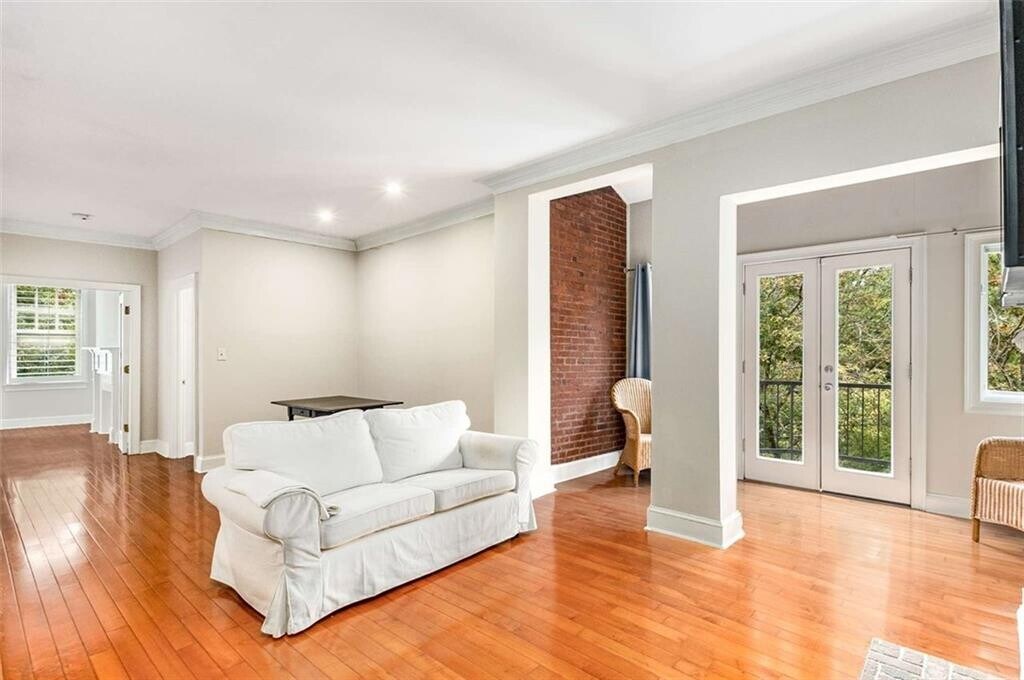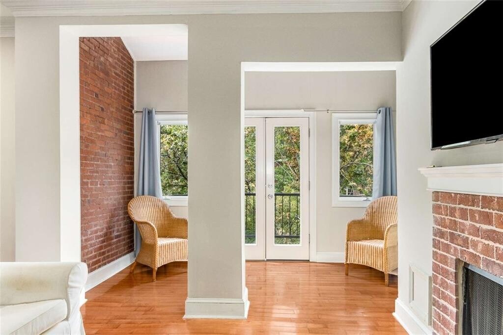 Welcome to Historic Crestwood – A Buckhead Landmark! Meticulously maintained and full of charm,this top-floor,end-unit condo offers 2 bedrooms,2 bathrooms,and an unbeatable location in the heart of Buckhead. Step inside to an inviting entrance that opens to a light-filled living and dining area,complete with crown molding,a cozy gas fireplace with beautiful exposed brick,and wide-plank hardwood floors throughout. The efficient kitchen features white & bright cabinetry,stainless steel appliances,tile backsplash,pantry storage,and a breakfast bar with a view to the living space. Just beyond,a bonus room with exposed brick makes the perfect office,sunroom,or sitting area and leads to one of two private balconies—ideal for morning coffee or evening cocktails. Both bedrooms are spacious retreats. The primary suite includes an updated ensuite bath with stunning marble counters,modern tile,and designer fixtures,while the secondary bedroom features a decorative fireplace and French doors. A convenient laundry room and a second updated bath complete the interior. The Crestwood,a 1920s English Renaissance-style building listed on the National Historic Registry,is a timeless community offering secured key fob entry,gated covered parking for two cars,a small fitness center,and water service included in the monthly dues. Investors are welcome—there are no rental restrictions on long-term leases. Perfectly positioned along Peachtree Road,Crestwood offers true walkability to Buckhead Village’s shops and restaurants,the Saturday morning Peachtree Road Farmers Market,and The Peach shopping center (with Publix,Starbucks,and more) just next door. Come experience this unique blend of historic character and modern comfort—an urban oasis with timeless appeal in one of Atlanta’s most desirable neighborhoods.