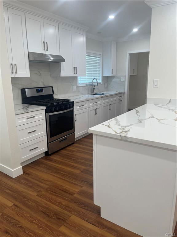 - This is a beautiful remodeled home. It is like a brand new home in a highly desirable area. You are close to great schools, Frwy. Access and transportation. Large open floor plan with a living room making a great room with nice wood floors, wide baseboards and crown moldings. Scraped ceilings, recessed lighting, new windows, horizontal faux style blinds and ceiling fan. The kitchen has white quartz counters and lots of shaker cabinetry, farm stainless steel sink and brand new gas range. The laundry room is an individual room with extra storage cabinets and access to the rear yard and convenient bath. Four good sized bedrooms with wood flooring, large baseboards, recessed lighting, ceiling fans, mirrored wardrobes, and new windows with horizontal wood faux blinds. One bedroom is specifically designed to be used as an office or infant room with closet and barn doors into the master bedroom. Three baths with both shower over tub and a large walk in shower in the master suite. The attached double car garage has lots of built in cabinets.The hardscaping and beautiful plants add to the curb appeal of this wonderful home. The rear yard is secure with a brick block wall, large grass area and newly poured slab patio. Lots of room to spread out and just enjoy life! Listing provided by: Jeannie Rothfuss of Seven Gables Real Estate LA State License 1248123 Listing posted by Leasing Office [SYNDID 4141274 10242025]