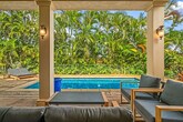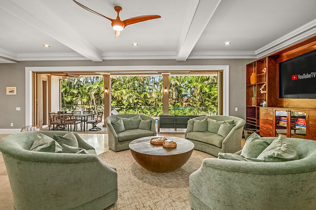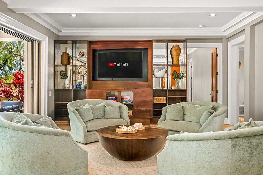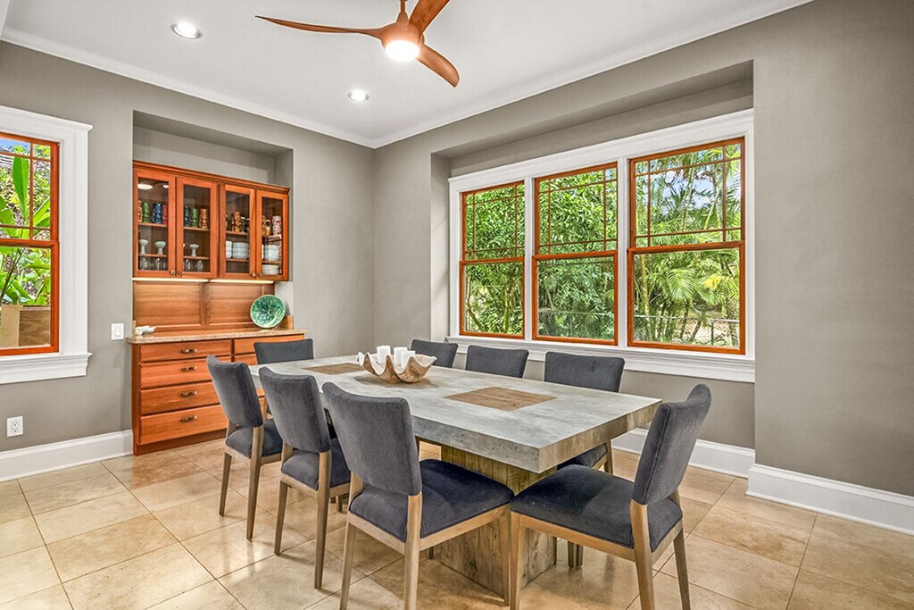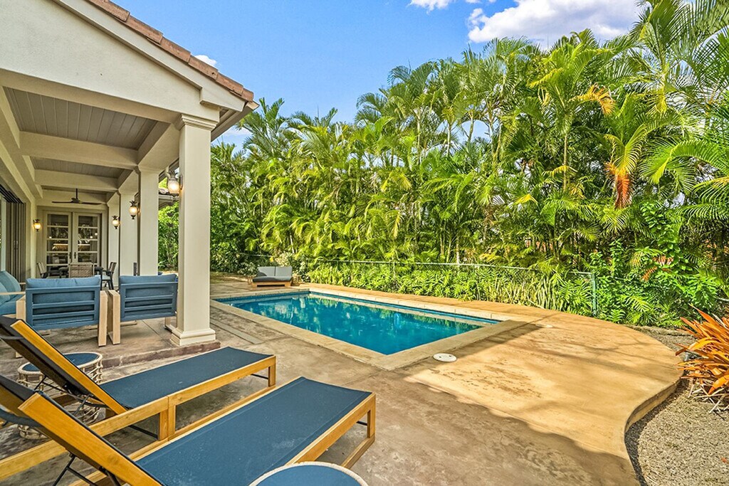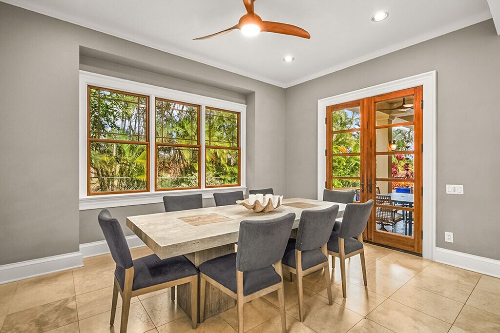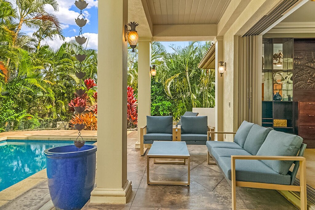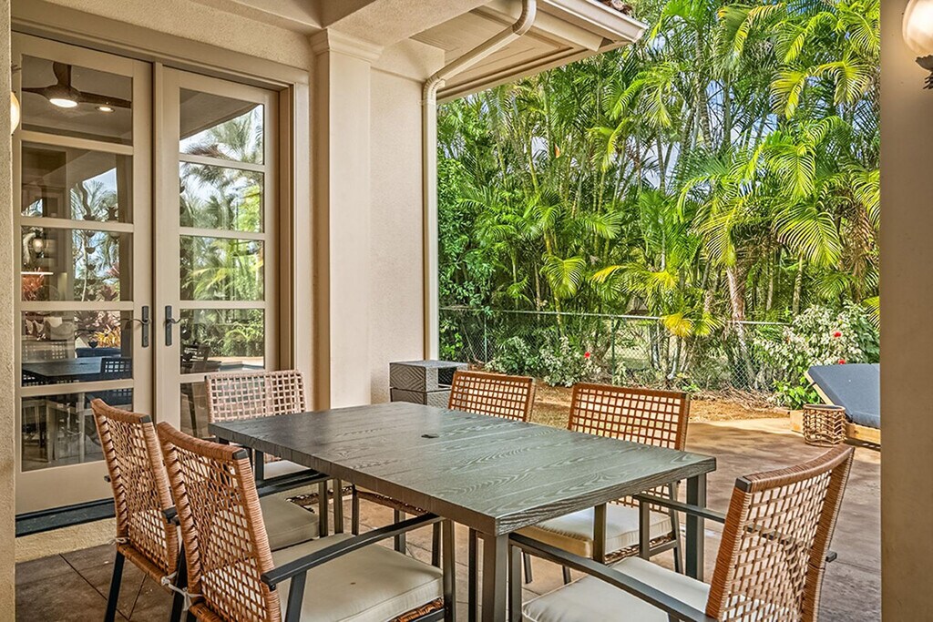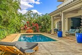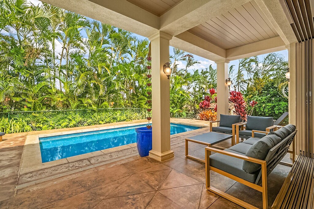 Aloha! Feel at home in this centrally located Hawaiian home in Poipu. This villa has 5 bedrooms and 3.5 bathrooms and offers 3,400 sq ft of spacious living. This villa is the pinnacle of indoor/outdoor living with telescoping doors opening to the outdoor pool area surrounded by tropical gardens. There are two outdoor showers, numerous lanais, and Brazilian floors. The chef's kitchen is open and ready for you to prepare island-inspired meals and features a Sub Zero fridge, 5 burner gas range, barbecue lanai, breakfast bar, two sinks, a new undercounter ice maker, and every appliance you'd need, including EVOO, salt and pepper, cooking essentials, plenty of prep space, and pantry storage. Serve dinner at the oversized indoor dining table, the small breakfast nook, or enjoy outdoor views on the dining lanai. There is also a chilled wine room. Enjoy your mai tai on the lanai, in the pool, or on one of the gorgeous chaise lounges or daybeds. You will also find your own private heated pool surrounded by lush landscape and fruit trees. This home is air-conditioned by 6 units, and there are also ceiling fans located throughout. The villa also offers a garage full of fitness equipment and adventure gear like children's bikes, scooters, snorkeling gear, and beach toys. Two pack n plays can be provided. Located in Kiahuna Golf Village, this villa is ready for some world-class golfing with ocean views or take the quick mile drive to Kiahuna Beach or drive an extra half mile to Poipu Beach where you're always guaranteed to see plenty of sea turtles and there's safe snorkeling for the KeiKei (kids). You're just a 2-3 minute drive from world-class dining and shopping whether heading toward The Shops at Kukui‘ula, Poipu Shopping Village, or the Grand Hyatt. Please make sure to turn off the AC during the day when you are not in the home to conserve energy. Please don't feed the koi anything but their fish food. Hawaii laws require that GET (4.712%), Kauai TAT (3.0%) and TAT (10.25%) taxes apply to the cleaning fee. Registration Number: ta--02 [SI]