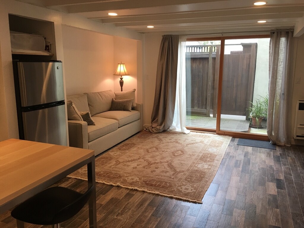 Welcome to your new home in the heart of Pacific Heights. This one-bedroom, one-bathroom apartment is a two-story cottage that boasts unique finishes and a layout brimming with character. The apartment features wood floors throughout and an open-beamed season, adding a touch of rustic charm to the modern comforts. The kitchen is equipped with a gas range, dishwasher, and refrigerator, perfect for those who love to cook. The private patio offers a serene outdoor space for relaxation or entertaining. The apartment is conveniently located just half a block from Alta Plaza Park and one block from Divisadero, placing you in the vibrant Pacific Heights neighborhood. The on-site laundry facilities add to the convenience of this super private location at the back of the property. With nearby shuttle stops and transportation, commuting is a breeze. Experience the unique charm and convenience of this apartment today.