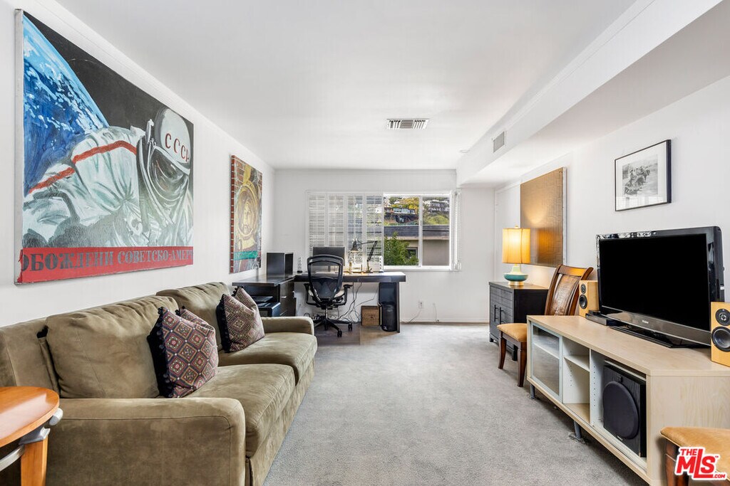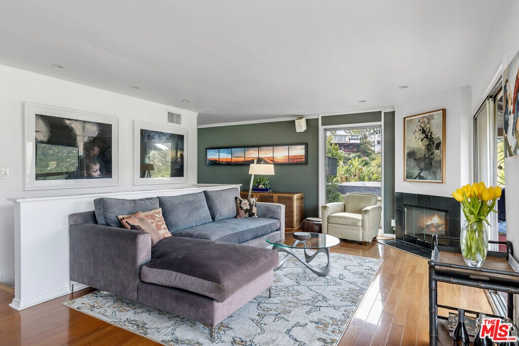 Privacy, views and great architecture; it's all here at this light-filled Mid Century in Beachwood Canyon. The entrance level offers an open floor plan with living and dining spaces opening to a great entertaining deck, and expansive views of the Hollywood Sign, Griffith Park, the Griffith Observatory and endless wildlife. The spacious kitchen includes an island with seating, granite counters, stainless steel appliances and abundant cabinetry. A fireplace in the living room gives you all the more opportunity to gaze out at the vistas. This floor also includes powder room and laundry closet. Downstairs are two bedrooms, including a spacious primary suite that has the same dramatic views and its own deck. The primary also has a spacious walk-in closet and well appointed bathroom including dual vanities, stone counters, custom cabinets, freestanding tub and luxurious dual-headed shower. The secondary bedroom is also spacious with its own walk in closet. Amazing location on a quiet cul-de-sac, with great access to the Beachwood Cafe, Beachwood Market, the Franklin Village and the entirety of Griffith Park. Property has dual zone HVAC, electric car charging and abundant storage. Can also be rented partially furnished. Easiest route is Beachwood to Westshire. MLS# 25619441