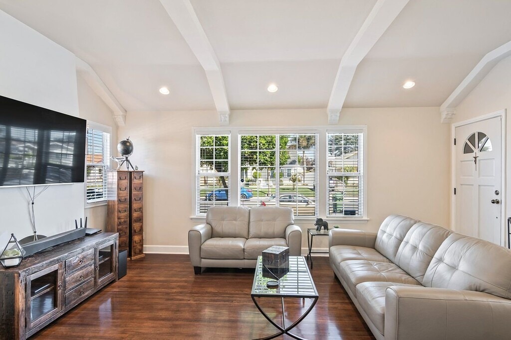 Property Id: 2489625 Located in one of Huntington Parks most desired areas of Walnut Park, the classic Colonial style home is oozing with charm and character! From the second you enter through the front door you will notice this home has been updated, cared for, and lovingly maintained. There are gleaming hardwood floors throughout the main living areas and bedrooms. The grand living room has barreled beamed ceilings, recessed lights, faux fireplace, and natural light pours in from all the windows. A step-up formal dining room is right off the updated kitchen with newer stainless-steel appliances, and granite counter tops and adjacent to the kitchen is a cozy breakfast nook. Three generous sized bedrooms; the master has a beautiful bay window, the 2nd bedroom is set up as a gym, and the 3rd bedroom is currently a den with sliding glass doors out to the spacious back yard with wood deck, stone patio, and plenty of room for socially distanced get togethers. There is also a 2-car detached garage, extra-long driveway. BUT WAIT ... THERE IS MORE!!! Inside the home is a pull-down staircase that takes you up to an oversized attic space that has been completely and tastefully finished, with a 3/4 bathroom (attic space is not included in the square footage). The perfect hideaway, man-cave, she-shack, game room...use your imagination as the possibilities are endless!