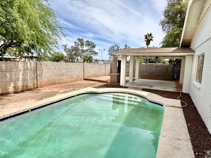 Nicely updated and refreshed Marlette Estates home with a POOL! Three bedrooms and two baths. Large living room with new tile "wood" plank floors and gorgeous fireplace. Updated kitchen features stainless appliances and walk in pantry. Massive family room with tile plank flooring. Huge laundry off of the family room has great additional storage. Down the hall you will see the third bedroom (does not have a window so its ideal for the day sleeper). Master has large closet and full bath with stall shower. Hall bath had tub/shower combo. Second bedroom is large with big closet too. Gated and walled front patio area off family room. Side yard off living room with turf. Pool is accessed out of the family room or living room. Covered patio makes this one a dream! Vacant on Lockbox on Water line, Email agent for status. $40 credit/person over 18. Pets on approval. $300 Pet fee is approved. $200 initial admin fee, 2% per month monthly admin fee. $300 cleaning fee. This property allows self guided viewing without an appointment. Contact for details.
