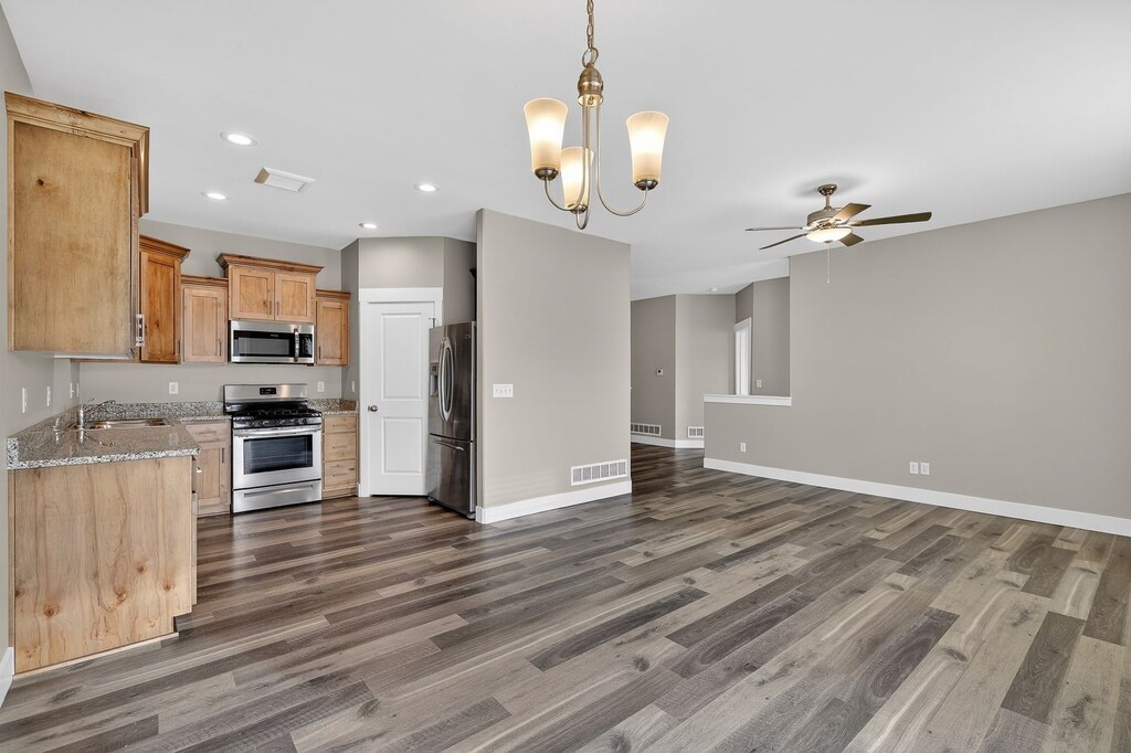 Awesome Twin home which is located in the upscale Linden Trails Community with quick and convenient access to the airport, interstate, desirable downtown shopping. Delivering a carefully designed floor plan, this breathtaking home features open concept gathering areas sensibly separated from bedroom spaces. Boasting granite counter tops, luxury vinyl plank flooring, custom alder cabinets, stainless appliances & corner pantry– this designer inspired kitchen is a dream work space for the household culinary artist, while a spacious master bedroom suite, with an over-sized walk-in closet & private bath, offers a touch of serenity & personal privacy for true relaxation. The additional 2 bedrooms are located in the lower level alongside a full bathroom and an exercise/storage room. A second laundry room downstairs THAT HAS 2ND SET WASHER AND DRYER helps eliminating the tedious task of transferring clean laundry up & down the stairs. Finely constructed with upgrades, gorgeous craftsmanship & all the quality expected. This gorgeous home is move-in ready, including front yard landscaping that is maintained by the HOA.