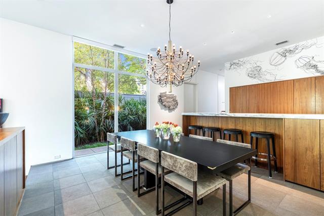 Offered for lease, this architecturally significant modern residence by Lionel Morrison with interiors by Brant McFarlain offers 2,366 sqft of refined living in prime Knox Henderson. This 2 bed, 2.5 bath home showcases exceptional custom features and luxury finishes throughout. A dramatic skylit entry reveals walnut stairs, a glass enclosed powder bath, and a library - office with custom floor to ceiling cabinetry. The tiered layout flows from the chef’s kitchen with premium appliances to dining and into a striking living room with 12 ft ceilings and walls of glass overlooking the private pool and spa. Lutron lighting and automated shades enhance comfort and ambiance. The quiet, serene backyard and resort style pool create a private retreat, with yard and pool maintenance paid by landlord. Ideally positioned just steps from Knox Henderson dining, shopping, and everyday amenities.