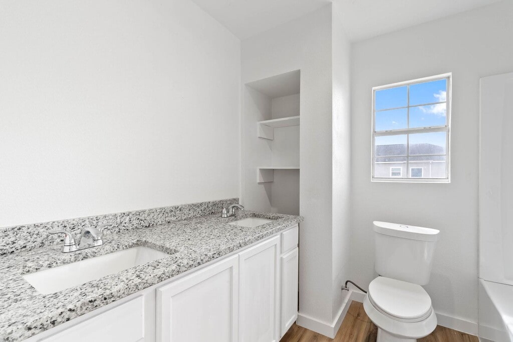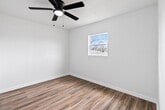 Updated three bedroom one bath home on a corner lot with luxury vinyl plank floors throughout, granite countertops, and fresh paint throughout! Front door opens up to a spacious and open living room that leads you into the dining room and and living room. Kitchen boasts stainless steel appliances, double basin sink, and lots of countertop and cabinet space plus access to the backyard. Washer and dryer connections tucked away in a closet. Bathroom boasts double sinks, open shelving, and a tub shower combination. All bedrooms boast windows that allow for natural light to fill the rooms and all have ceiling fans. Call a Realtor today to schedule a showing!