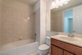 Available for long term rental in the vibrant,gated community of VillageWalk of Bonita Springs is this attached,two story,unfurnished townhome. This unit has abundant living space both inside and out. With three bedrooms and three full baths there is room for family as well as guests. Tile flooring is throughout the main living area with plank flooring in the bedrooms. A centrally located kitchen has rich brown cabinetry,stainless appliances,granite counters and a breakfast bar for extra dining space. All bedrooms have walk-in closets and attached baths. This home has three bathtubs and showers. Your laundry room is located on the second floor and has a wash sink and additional storage. Access into the home from the two car garage is through the private,screen enclosed patio. A ground level porch (with separate entry door into the unit) and upstairs balcony give additional outdoor seating. Amenities include a resort pool,fitness center,both pickle ball/tennis and playground. The town center building houses activity rooms. This community has a restaurant,gas pumps and its own post office. Built around a system of lakes there are miles of walking/jogging trails to enjoy the beautiful south West Florida sunshine.