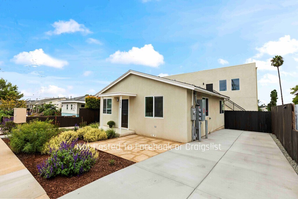 This cute two-bedroom, one-bath home has undergone a full remodel and offers a cozy and comfortable living space. The kitchen has stainless steel appliances, a gas stove, a built-in microwave, a full-sized washer/dryer, off-street parking, quartzite countertops, a deep sink, and attractive white shaker cabinets. Enjoy peace and quiet on a residential street with air conditioning, ceiling fans, plank flooring, custom closets, ample storage, and your own private patio with new landscaping. The owner pays for trash/recycling - a one-year lease is required, no pets. This ideal location puts you at the center of it all. It is a short distance to freeways, The University of San Diego, UTC, and Mission Valley.