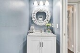 Tucked in the gated community of Bermuda Springs this spacious 2-story 4 bed 2.5 baths updated home with designer lighting, newly remodeled white modern kitchen, stainless steel appliances and quartz counters, high volume ceilings in the living room. Contemporary wood look floors in all living areas and on stairs. Owners bedroom suite upstairs with renovated bath including dual sinks & new white vanity, roman tub, and shower. Walk to A-rated schools, zoned for Cypress Bay. Close to dining, shopping, and Markham Park nearby. 5 minutes to I-75
