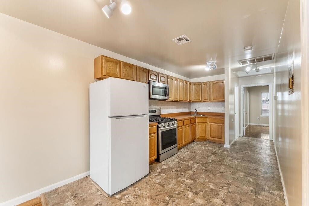 Discover this inviting 1,200 sq ft apartment on Jersey City's west side. Featuring three bedrooms, two baths, tall ceilings, and abundant natural light, the space is both charming and spacious. Enjoy the elegance of hardwood floors alongside the convenience of shared laundry and driveway parking. With the West Side Avenue Light Rail Station at the corner and easy access to public transit and major highways, commuting is a breeze. Indulge in nearby restaurants and shops, making this an ideal home in a prime location!