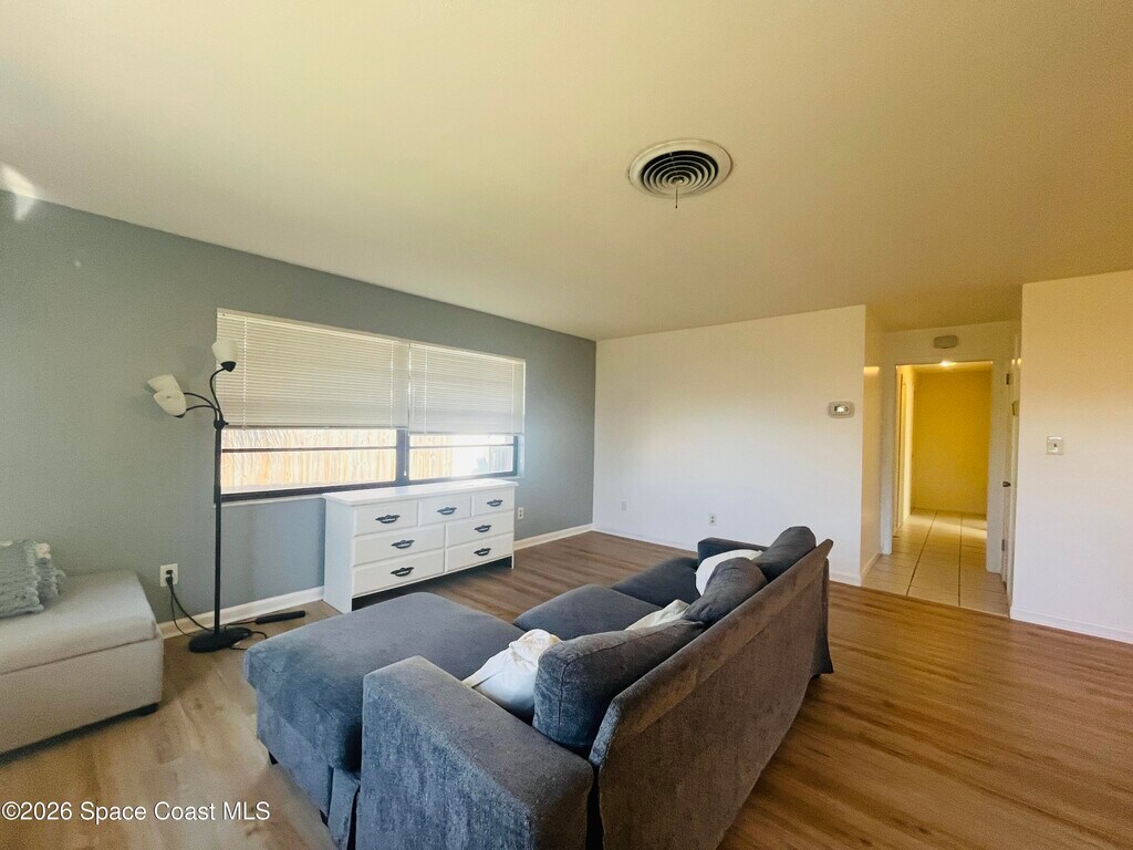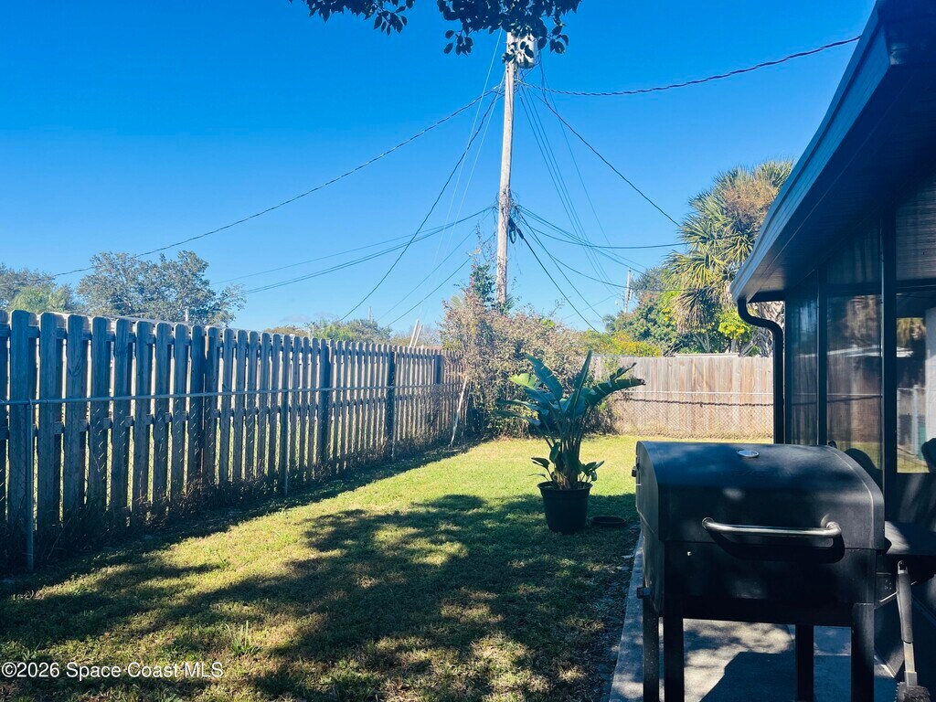 Renovated South Merritt Island home with two car garage! Three bedroom two bath on a large .21 acre corner lot! Updated kitchen with newer cabinets,counter tops,stainless steel appliances,fixtures and kitchen island,Open floor - kitchen opens to living room and dining area. Spacious family room - could lend itself to be a at home office,playroom,exercise/gym area. Screened porch with fenced in backyard. Primary bedroom with updated en-suite bathroom - newer tile,fixtures,paint,walk-in shower. Second bathroom has also been updated with newer vanity,fixtures,toliet and paint. Owner is pet friendly. No aggressive breeds. Property does have gas and electric. MLS # 1067832