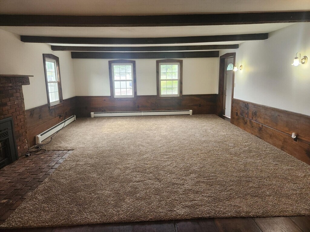 Amazing and unique cape style townhome with 3 bedrooms and 2 bathrooms with tons of charm! Feels like a single-family home!! The lovely property features,economical gas heat,tons of natural wood throughout,gorgeous hardwood floors,new carpets and light fixtures,beamed ceilings,tons of closet space. First floor primary bedroom with full bathroom,two large bedrooms and bathroom on second floor,kitchen has newer appliances and with a large walk-in pantry. Separate laundry room. Close to center of town,shopping,dining and major routes and highways. No smoking or pets please. Water,sewer,grass maintenance,and parking lot snow plowing included. Tenant responsible for shoveling walkway,gas,electrical and cable. Home comes with a one car garage with garage opener. Minimum 650 credit score plus able to verify income. MLS# 73476840