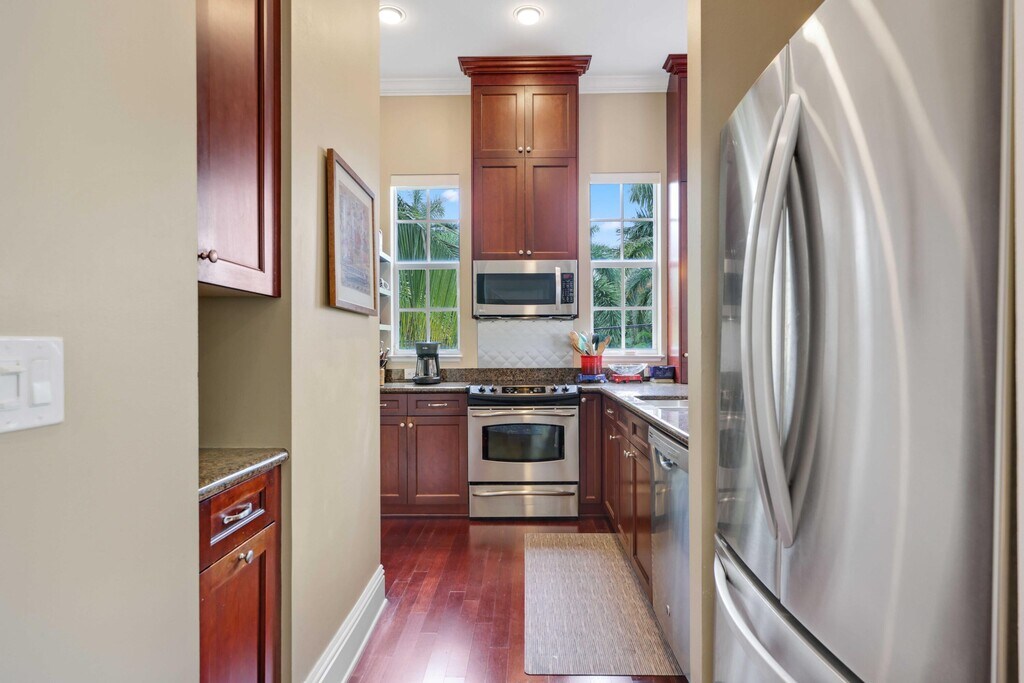 When only the best will do! This beautifully appointed,furnished turn-key corner-unit townhome in the heart of downtown Delray Beach offers 2 bedrooms,2.5 baths,and a 2-car garage. Features include hardwood floors,lush carpet,10ft ceilings,impact windows,custom kitchen cabinetry,granite counters,stainless appliances,and custom closets. The bright,light-filled space includes a private balcony off the primary suite. Steps to the community pool,2 blocks to Atlantic Ave,1 block to the Intracoastal,and a short walk to the beach. MLS ID R11154670