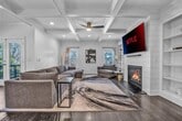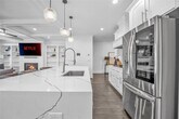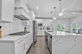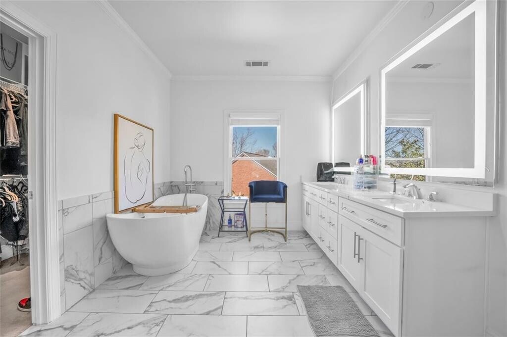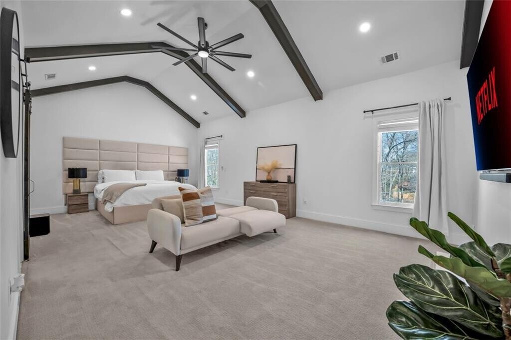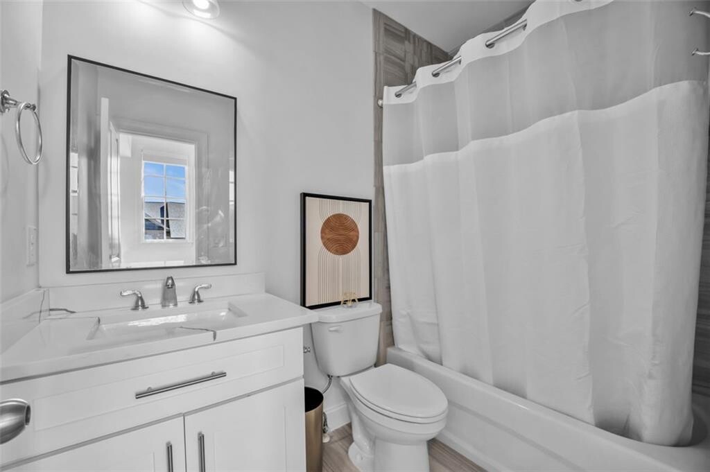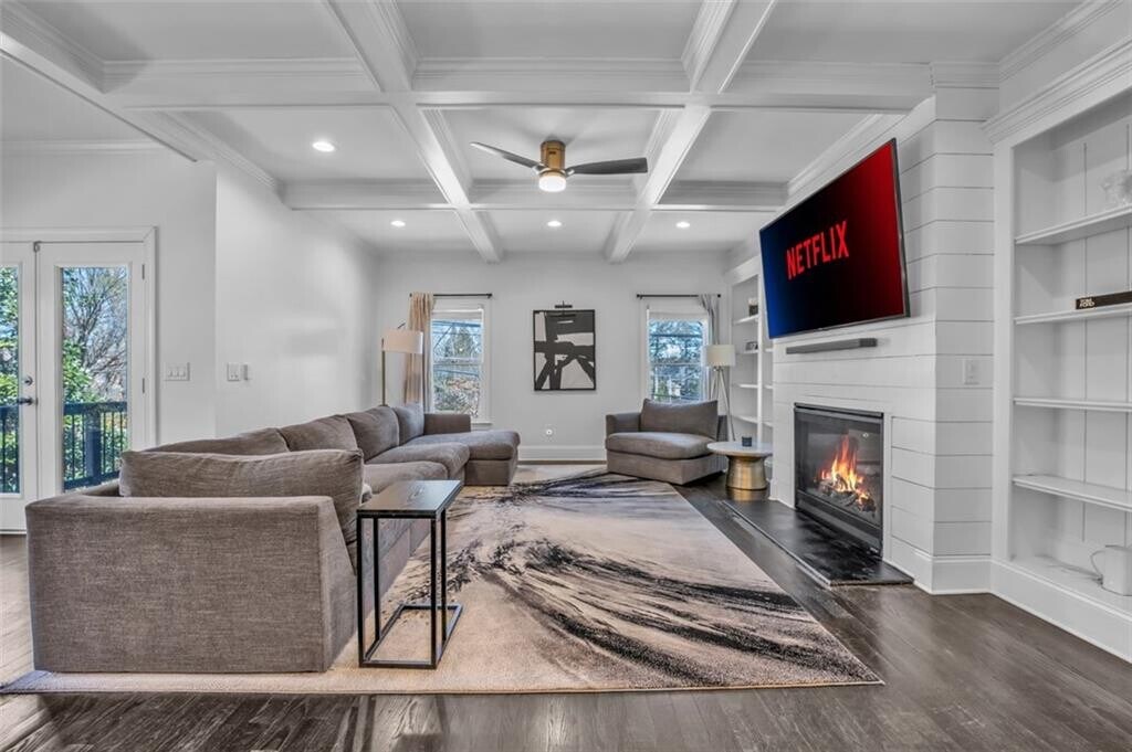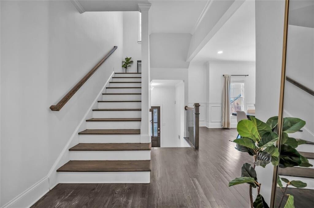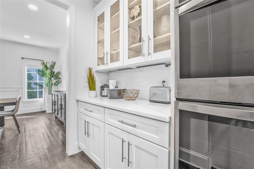 Experience luxury living in this exclusive gated townhome community in the heart of Vinings, just minutes from Buckhead. This beautiful end unit features open-concept floor plans, gourmet kitchens with Quartz countertops, site-finished hardwood floors, ship lap accents, and coffered vaulted ceilings. Enjoy the wide staircases, elevator-ready spaces, 2-car garage, and elegant fireplace. The owner's suite boasts an oversized bedroom with a barn door leading to a spa-inspired bath with double sinks, a freestanding tub, a separate shower, and a spacious walk-in closet. Secondary bedrooms each include private en-suite bathrooms. Additional highlights include a separate laundry room and a private covered balcony. Conveniently located near shops and fine dining that Cobb County has to offer!