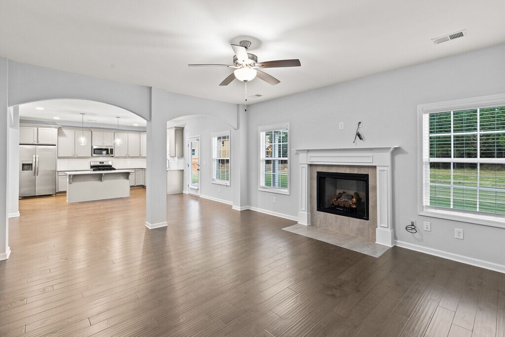 Wyndham Village is a newer development near Exit 58 on I85 - convenient to Tiger Town and the AMC Theaters!! Prime location. This is a brand new home just built by Hughston Home Builders and is ready for immediate occupancy. Quarterly Pest Control and Monthly Lawn Maintenance are included with this property. This house has it all! Beautiful hardwood floors throughout the main level. Formal dining, open kitchen / living concept. Living room has gas log fireplace. The outdoor patio is covered and has wood burning fireplace + TV hookups above the mantle. Huge master bedroom with everything you would want in master bathroom. Total of 4 bedrooms and 2.5 bathrooms. Two car garage. Neighborhood pool coming soon! Call us today for more information.