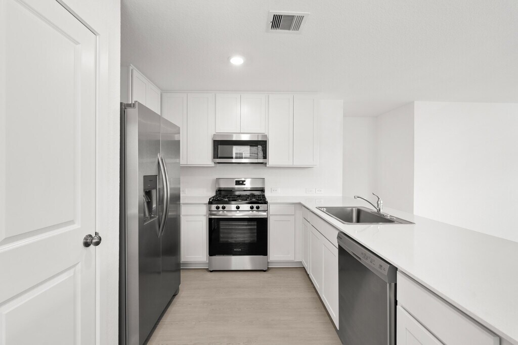 NEW! NEVER LIVED IN! This beautiful single-story home offers 3 bedrooms,2 bathrooms,and a 2-car garage with automatic opener. The modern open-concept floor plan seamlessly connects the kitchen,dining,and living areas—perfect for everyday living and entertaining. The primary suite includes its own en-suite bathroom and a spacious walk-in closet. All bedrooms feature soft carpet flooring,while the main living areas are upgraded with durable vinyl plank flooring for a clean and contemporary look. This home comes fully equipped with blinds,washer,dryer,and refrigerator — a rare move-in-ready advantage! The Grand Prairie offers exceptional amenities including walking trails,community pools,splash pad,clubhouse,playground,zip line,lake access,& more. With quick access to major freeways,commuting and exploring the city is a breeze... 10 minutes to Cypress! Schedule your private showing today! MLS# 31068770
