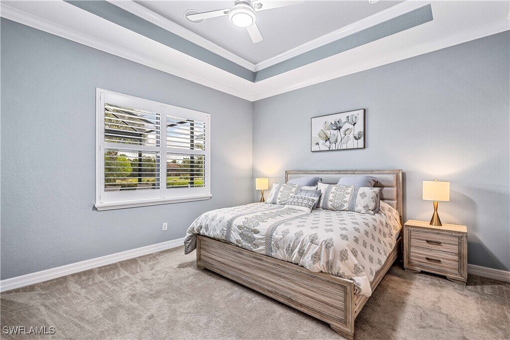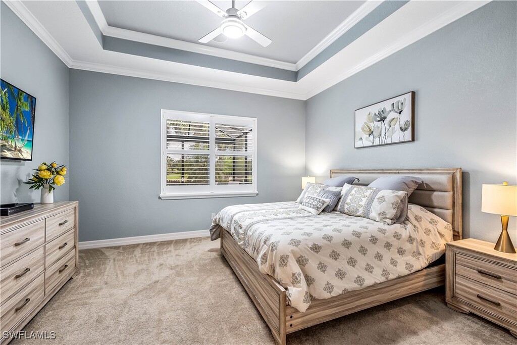 A full golf membership is included with this spectacular home. Sitting on the 11th hole,this rare Stanford floor plan,4 bedroom,3 bath,3 car garage,boasts many custom features,such as luxury vinyl plank floors,granite countertops,technology package,impact glass throughout,custom glass front door,plantation shutters,crown molding,10-foot ceilings,8-foot doors,wood closets throughout,custom lighting,UV air purifier and more. The east-facing lanai features travertine,wood-plank ceiling and a built-in grill,where you can enjoy sunrises through the panoramic no-see-um screen enclosure. Bonita National Golf & Country Club amenities are second to none,including an 18-hole championship golf course,driving range,putting green and short game practice area. The tennis complex includes eight Har-Tru tennis courts,tennis pro and pro shop. The fabulous lagoon-style pool has a rock waterfall,lap pool,private cabanas,a poolside bar and a grill. The 35,00- square-foot clubhouse boasts fine and casual dining along with a full spa,staffed fitness center,a card room and men’s and ladies locker rooms. This four-bedroom,three-bath,three-car garage home is a gem!