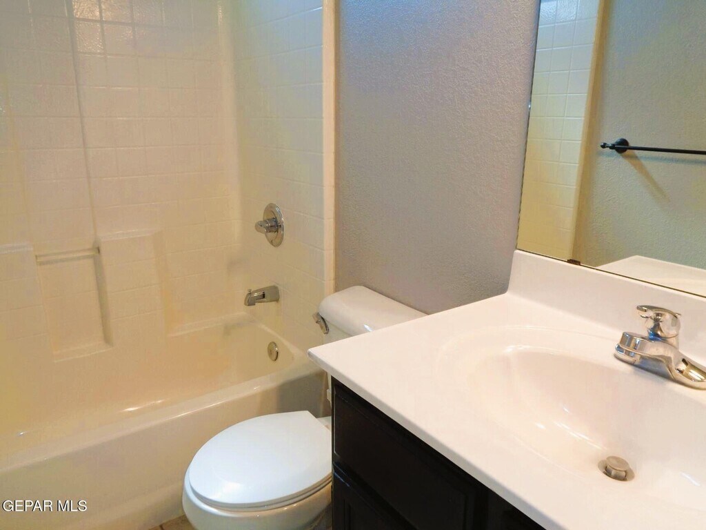 Impeccable two story Eastside home with refrigerated air located in quiet neighborhood. Home features living area,den,dining area,three bedrooms,two full bathrooms & converted garage. Converted garage can be used as in-law quarters,maid quarters or guest quarters as it has a kitchen area & three quarter bathroom. Amenities included are granite counter tops,full stainless steel kitchen appliance package,master bedroom walk in closet,master bathroom double vanity,master bathroom garden tub,master bathroom separate shower,laundry room,solar panels,back covered patio & much more. Front & back yards are professionally landscaped. Home is located close to parks,schools,shopping,freeway access & Fort Bliss. Come view this home today as it is ready for immediate move in!