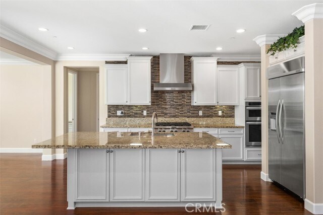 Beautiful and Stunning house in Black Stone community. High ceiling as you walk in the entry way. Beautiful wood floor throughout the entire house. Contemporary kitchen with granite countertop with full back splash. Stainless steel appliances . Many upgrades throughout. Built in wet bar off formal dinning room. One bedroom downstairs with its own bathroom. All bedrooms are equipped with own bathroom. Master bathroom with his and her vanity with quartz countertops. Specious walk in closet. Low maintenance front and back yard for water conservation and no neighbor behind. Community provides pool, spa and park. MLS# TR25247193