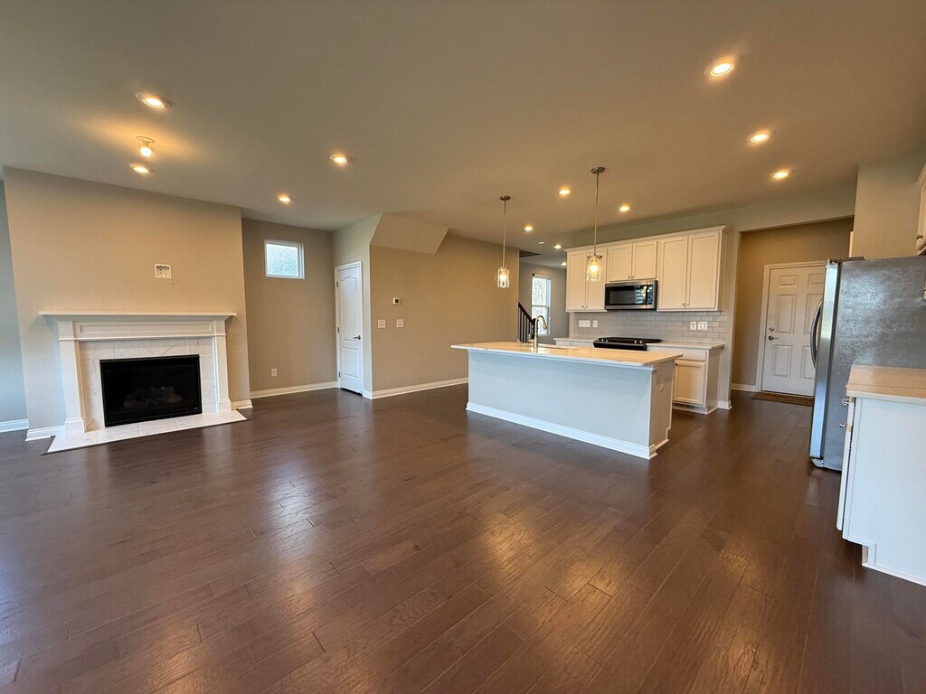 South-facing home with beautiful pond views! This home features an open-concept main floor with real wood natural flooring,white kitchen cabinets,quartz countertops,and an island with seating that is perfect for gathering with family and friends. Additional highlights include a gas fireplace,a large single-basin graphite composite sink with disposal,stainless steel appliances,and an attached two-car garage. A sliding glass door leads to a concrete patio overlooking the pond. The second floor includes a spacious primary suite with an extended sitting area and a walk-in closet. The primary bathroom features a double vanity with quartz countertops,tile flooring,and a luxurious tiled shower with a glass door. Two additional bedrooms share a second full bathroom with a tub/shower combination and a double vanity with quartz countertops. Convenient second-floor laundry completes the upper level. Tenant is responsible for water,gas,and electricity. HOA covers snow removal,lawn care,and trash service,which will be handled by the landlord. One small pet under 35 lbs may be considered with an additional $40/month pet fee. Security deposit: 1.5 months' rent Non-refundable cleaning fee: $300 670 and up credits score required.