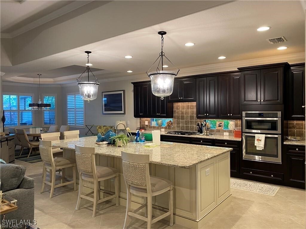 **AVAILABLE FOR THE 2026 SEASON** Beautiful long lake view with a lighted fountain in highly desirable Cordova At Spanish Well located off Bonita Beach Rd. in Bonita Springs. The tastefully done home comes turnkey furnished - just bring your suitcase! The 3 bedroom plus den home features volume ceilings with an open floor plan! A massive island in the kitchen is great for any chef or just for food serving while entertaining. The sliding doors open from the living room into the outdoor large covered lounge area. Enjoy the Florida weather with an outdoor kitchen and good size heated pool. Great space for entertaining or relaxing! Large bedrooms with plush carpet. Spanish Wells is a gated golf community with many amenities including a club house,workout room,community pool,bocce courts and many more. Just miles to Barefoot and Bonita Beach,Coconut Point mall,fine dining and many other activities.