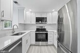 Welcome to historic Fairlington, a fantastic community with character. This home is fully renovated and ready for a tenant looking for that new-home feel. A brand new kitchen features new luxury-vinyl tile floors, quartz countertops, white shaker cabinets and shiny, stainless-steel appliances, while a new bath showcases a stylish vanity, new tile floors, and a modern feel with white-quartz countertops brightened by a stunning mirror and overhead, light fixture. New carpet and fresh paint run throughout the spacious floor plan, which also provides for wonderful natural from three directions with the home's position on the end of the building. features a spacious floor plan with great natural light and backs to trees and community pool. The living room and bedrooms provide ample space for furniture arrangements. This home has convenient access to Metrobus (less than a block) and connects with the Pentagon City and Pentagon Metro Stations, allowing for for a quick commute into the District and several other destinations, including Mark Center, Old Town Alexandria, and other parts of Arlington. Nearby and walkable Shirlington Village, Alexandria Gateway, and Bradlee Center provide multiple options for shopping, entertainment, enrichment, and dining any time of day. This home is also convenient to several bike/walk and nature trails. Available immediately!