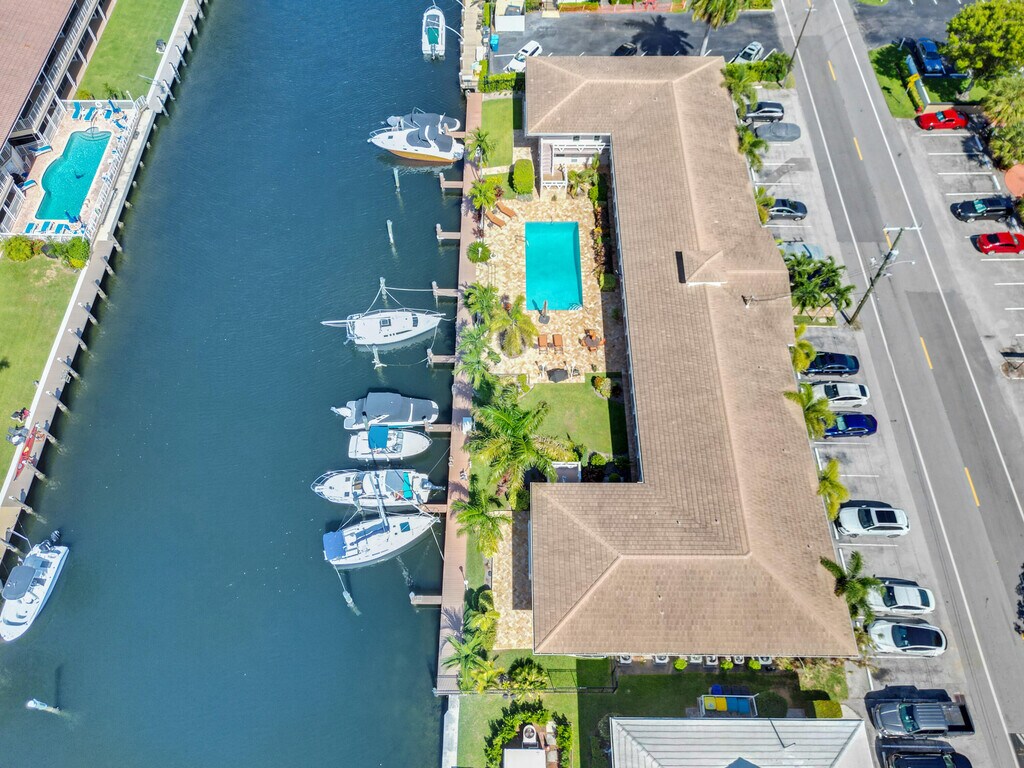 Enjoy breathtaking waterfront views from this beautiful residence offering the ultimate in coastal living! This property features a HUGE patioperfect for entertaining or relaxing. Boating enthusiasts will appreciate the dock availability (additional cost) accommodating vessels up to 30' with no fixed bridges. Inside,you'll find a stylish interior with stainless steel appliances,elegant marble flooring and bath,and sleek granite countertops. The versatile second bedroom includes a built-in office that can remain or be removed to suit your needs. Ideally located within walking distance to the beach,restaurants,shopping,and a dine-in theatereverything you need is right at your doorstep. Waterfront living at it's finest! Boat Dock Available MLS ID B26016710