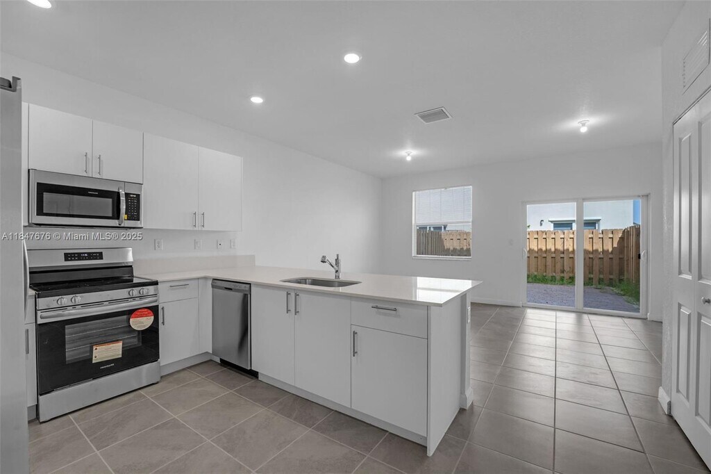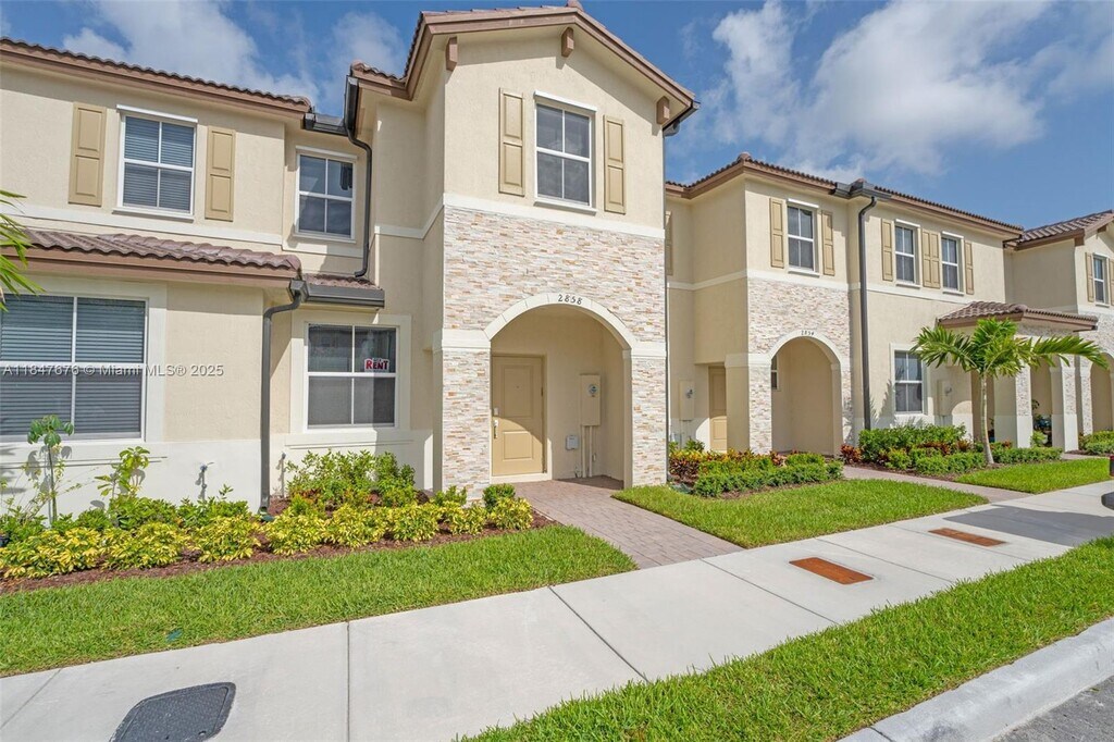 This brand-new two-story townhouse features three spacious bedrooms, two full bathrooms, and one half-bath. The spacious layout includes a family room, dining room, and kitchen, while a separate living room offers additional space for relaxation and entertainment. All bedrooms are on the second floor. The kitchen is equipped with SS appliances, quartz countertops, and plenty of cabinet space. Elegant ceramic tile flooring, while the second floor is covered in comfortable carpeting. Large, fenced patio, perfect for relaxing or entertaining. Perfectly located near schools, Turnpike Exit 2, retail shops, restaurants, a hospital, Amazon Distribution Center, and Homestead Air Base. Association approval takes 30 days, and tenants are responsible for their own water and electricity.