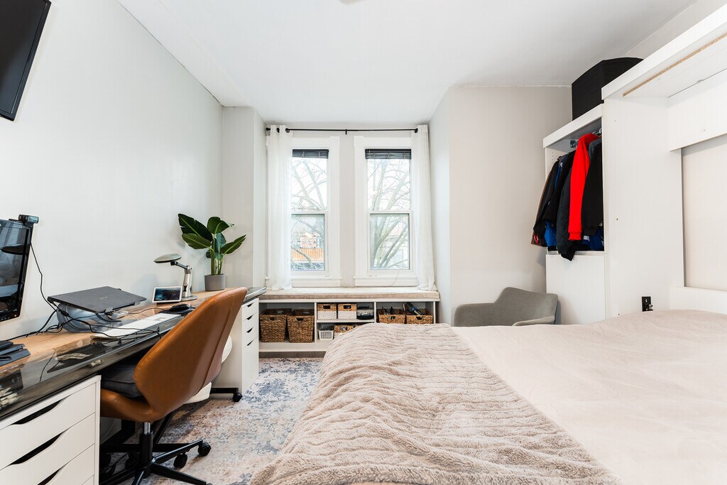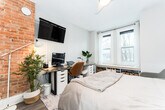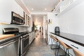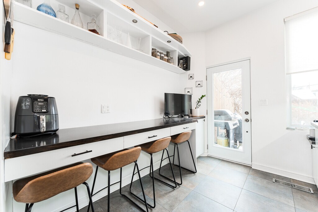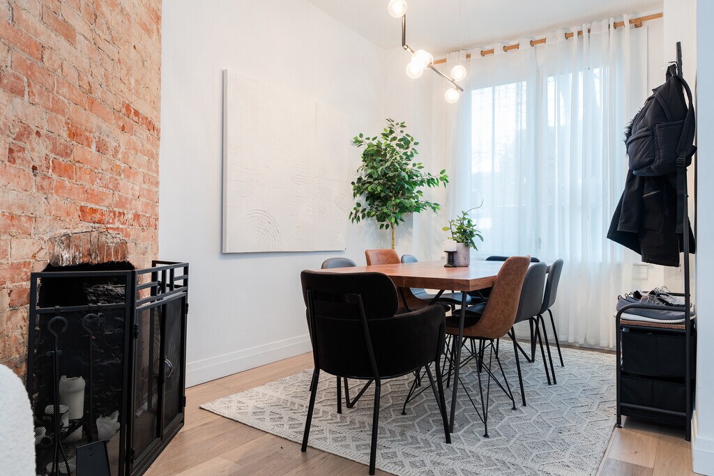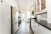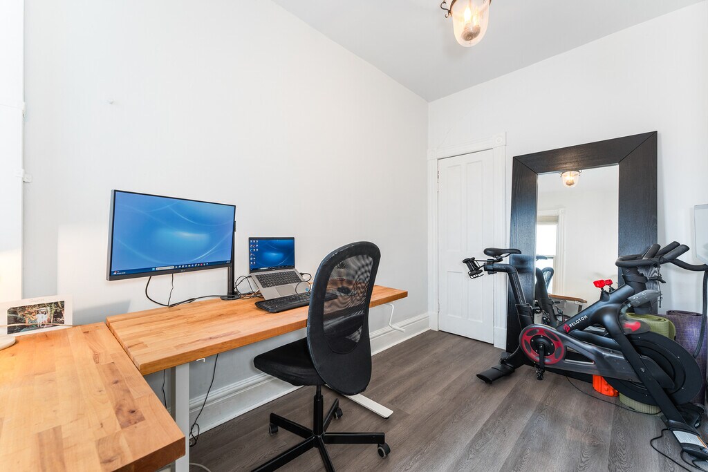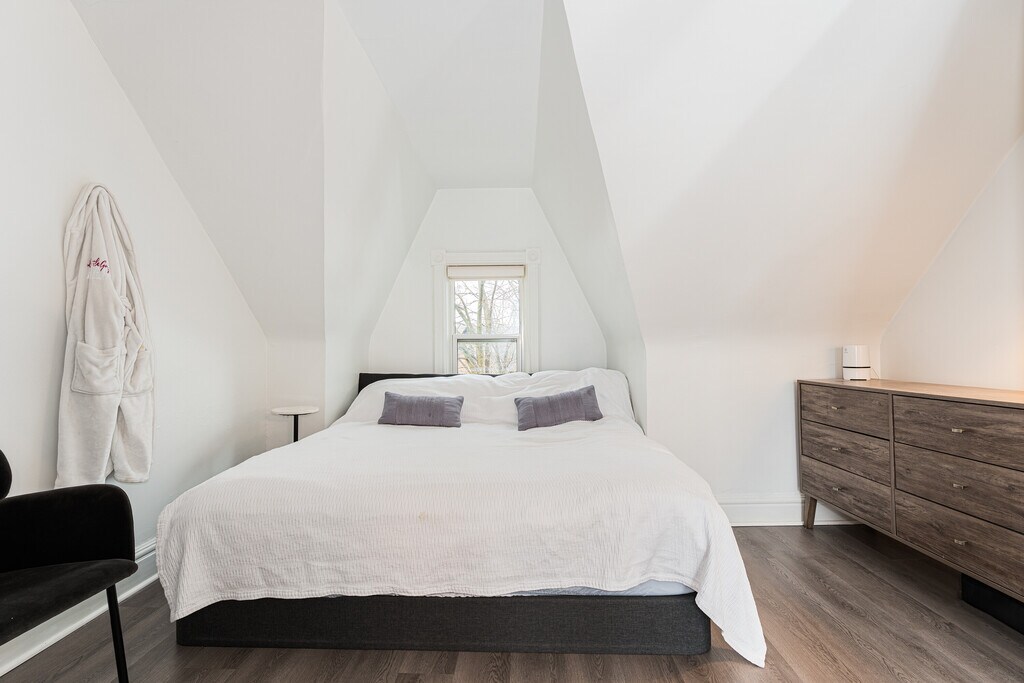 Fantastic 3-Storey renovated victorian gem tucked away in downtown's coveted Trinity Bellwoods. Open concept home with plenty of windows and light - enjoy original features: brick fireplace, exposed brick walls, pot lights, wood floors and glass railings throughout. Dining room and living room are spacious with 9.5 feet ceilings and bring you in to the modern kitchen with a large builtin desk, cabinet lighting, stainless steel appliances and 4 burner gas stove. The deck leads you to your private backyard with cobblestones, gardens and fairy lights. A bright second floor contains 2 good sized bedrooms with windows and closets, laundry room and beautifully upgraded 5-piece bathroom with built in cabinets. You'll love the third floor showcase loft - completely open, this primary bedroom offers you 7.5 feet vaulted ceilings, exposed brick walls, a built in closet, ensuite bath and walk out to your second private sun-soaked deck. The modern bedroom soaker tub allows you to indulge as you would a spa. This is the perfect elegant home for working professionals. Book now before this one is swiped up! Fireplace is decorative only.