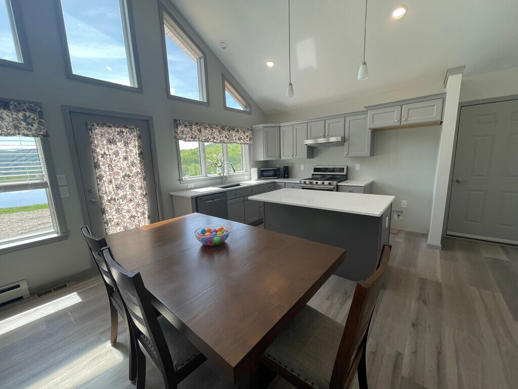 Discover an exceptional long-term rental designed for those who value both refined comfort and the restorative power of nature. Set on an expansive 86-acre estate in scenic Hancock, this brand-new 2-bedroom, 1-bathroom apartment offers a rare opportunity to live and work in a peaceful, inspiring environment. Thoughtfully designed with soaring cathedral ceilings and sweeping views of rolling landscape, this fully furnished residence is move-in ready—ideal for professionals seeking a turnkey home without the hassle of setup. Large windows invite natural light throughout the space, creating an uplifting atmosphere perfect for remote work, creative pursuits, or simply unwinding at the end of the day. All utilities are included in the rent, offering true simplicity and predictability. Enjoy the convenience of in-unit laundry, reliable backup power via a generator, and modern comforts that ensure seamless daily living year-round. Step outside and immerse yourself in the beauty of the Berkshires. The property features serene pond views, access to a gently flowing river perfect for wading or quiet reflection, and an outdoor fire pit for evenings under the stars. Nature lovers will appreciate the privacy, open space, and the calming sounds of water and wildlife that make this setting truly special. Whether you're seeking a tranquil retreat, a professional-friendly live/work environment, or a fully furnished long-term home surrounded by natural beauty, this one-of-a-kind rental delivers a lifestyle that’s both elevated and grounded in nature.