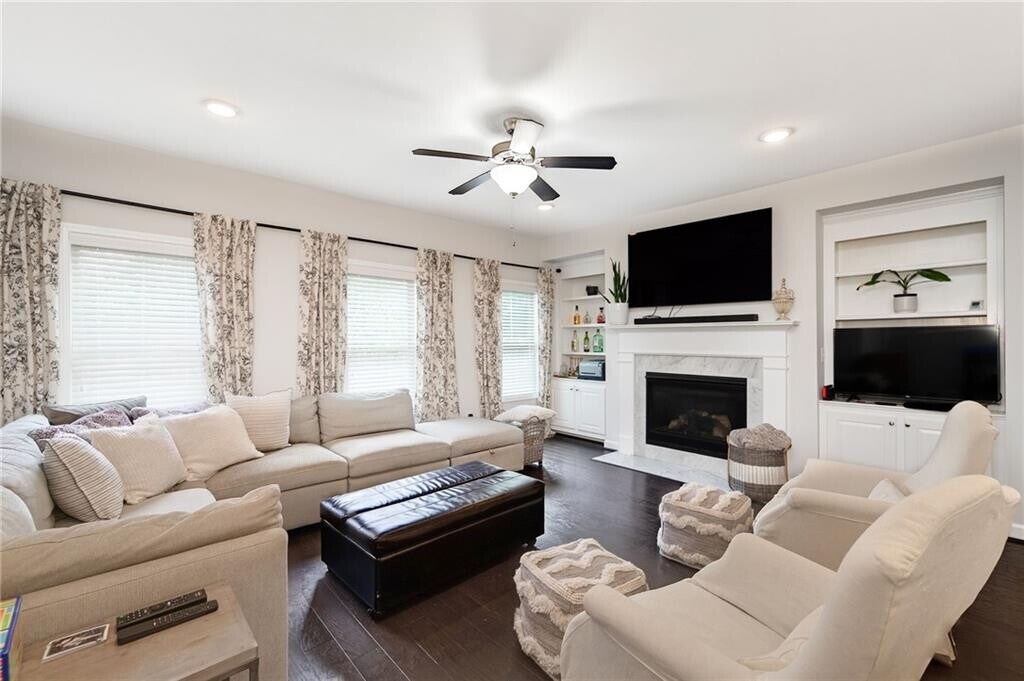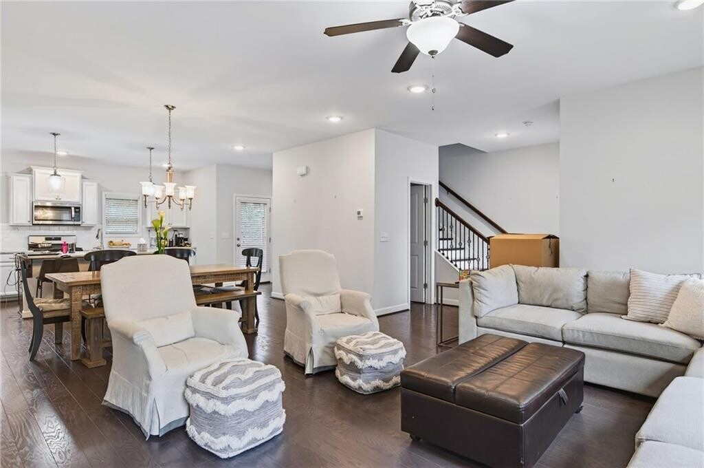 Walk to downtown Kennesaw from this stunning townhome! Just a one-minute walk to the new amphitheater and award-winning restaurants. This gorgeous 3 story townhome built in 2019 is in the sought after Fullers Chase Community! The main large area of the home features a gourmet kitchen with upgraded appliances including refrigerator,stunning counters,a huge island with tons of cabinet space and countertops; all open to the spacious dining and living area. Plenty of space for a table to seat up to 10,this area is simply perfect for entertaining. The gourmet kitchen and dining area are open to the great room with fireplace and custom built in bookshelves. The upper level features an oversize master suite with sitting room,spa-like bath with double vanity sinks and a walk-in shower,plus walk-in closet! This is one of the few units with a walk-out covered porch on the upper level! A 2nd bedroom is located on the upper level with a private bath. The lower level features a large 3rd bedroom with private bath that's perfect for teen,in-law suite or roommate. Covered outdoor patio on lower level to fenced backyard. Intimate community with just 28 townhomes and is just over a mile from Swift/Cantrell Park and walking distance to all downtown Kennesaw has to offer. 2-year lease preferred - no pets. Credit check & background check required.