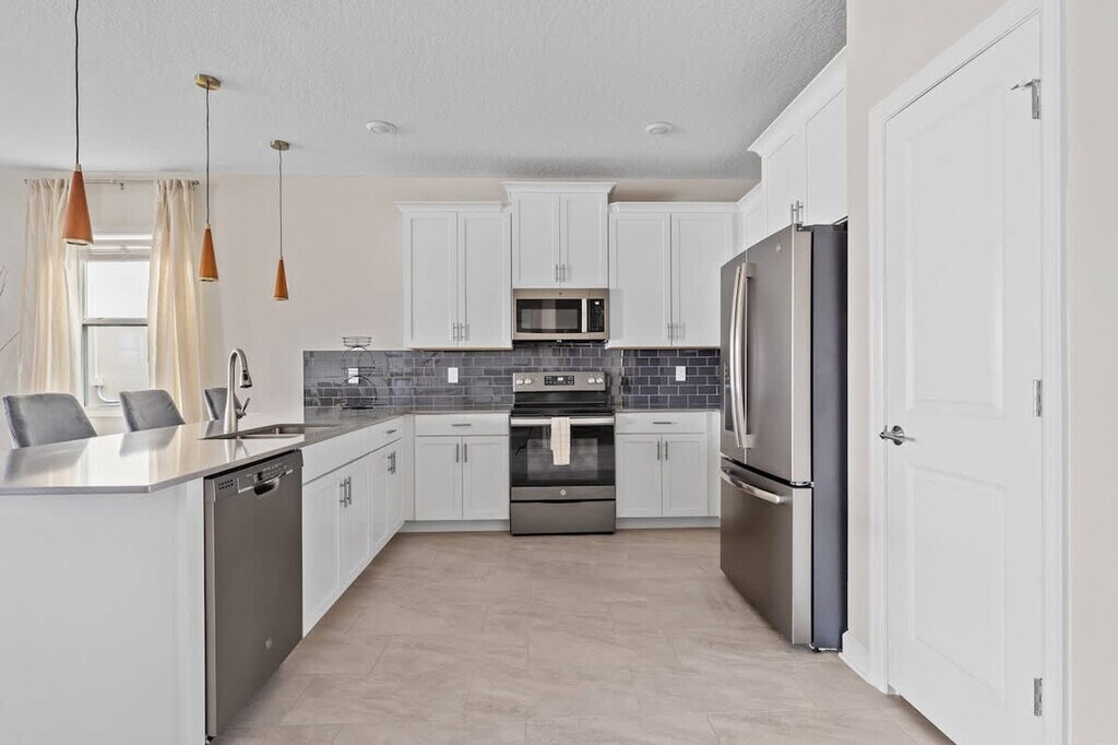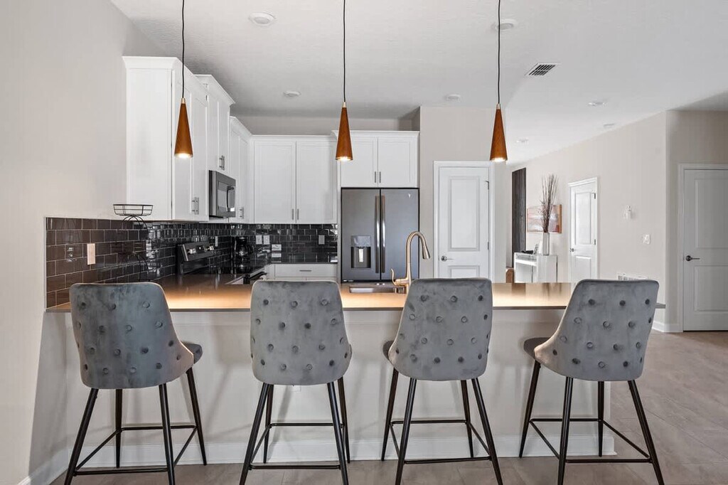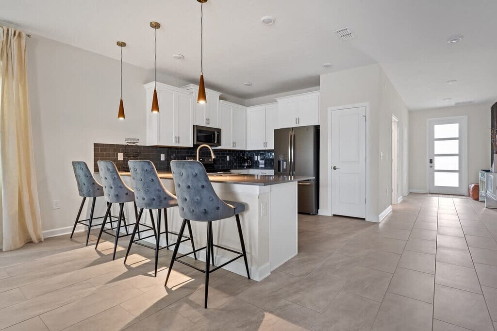 Welcome to a world where elegance meets creativity in this stunning residence. Designed for those who appreciate both luxury and imagination, this home features unique themed rooms that elevate every corner. Accommodating up to 18 guests with 7 bedrooms and 5 bathrooms, this residence offers a spacious and luxurious living experience. The living room downstairs is equipped with a 65-inch smart TV, while the king master bedroom and gray king bedroom each feature a 55-inch smart TV. The upstairs living room boasts a 75-inch TV, and the game room includes a 55-inch smart TV. Enjoy high-speed Wi-Fi provided by Spectrum, with speeds up to 1Gbps, ensuring seamless connectivity throughout your stay. The private pool and spa can be heated for an additional fee of $35 per day with a minimum of 3 consecutive days. A house grill is available for use with a cleaning fee of $35 per stay, and guests are responsible for propane refills. Extra and concierge services are optional and not included in the reservation price, such as early check-in, late check-out, and mid-stay cleanings. Baby items like a Pack n' Play are complimentary for all stays. Experience the luxurious vacation community of Storey Lake Resort, where magical adventures await you just 4 miles away at Disney World. With Universal, Sea World, and other parks just minutes away, you'll have endless entertainment at your fingertips. Spectacular outlet shopping and fine dining options are also within a quick drive from the resort. At Storey Lake, you'll have access to top-notch amenities at "The Hideaway Club," including a fitness center, poolside dining and bar, resort heated pool and spa, lazy river, mini golf, water slides, splash pad, and kayak rentals. This property is not pet-friendly, but service animals and emotional support animals are welcome with a written request. Misrepresenting the use of a service animal is a second-degree misdemeanor. The property has a regular pest control service, but sightings of wildlife or pests may occur. The pool area is equipped with a safety fence, and there is no lifeguard on duty. Smoking is prohibited, and a $250 fee will be charged for any signs of smoking. Check-in is at 4 PM and check-out is at 10 AM. Unauthorized late check-out will incur a fee of half the nightly rate. Guests must provide an email to receive check-in instructions. [SI]