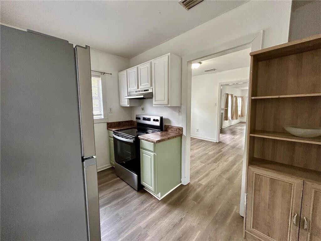 Charming Cottage and Guest House. This delightful cottage offers three bedrooms and two bathrooms. Conveniently situated off Airport Blvd.,the home features a spacious living room highlighted by an ornamental fireplace and large windows that fill the area with natural sunlight. There is a dedicated dining area separate from the living room,perfect for meals and gatherings. The cozy kitchen stands out with colorful upper cabinets and green lower cabinets,and is equipped with an electric stove,cooktop,oven,range,and refrigerator. A side door in the kitchen provides direct access to the driveway. The hall includes a full bathroom,and a laundry space with hookups for a washer and dryer,ensuring convenience for daily chores. The split bedroom floor plan places two bedrooms at the front of the house,while the main bedroom is located at the back. The main bedroom features a walk-in closet and a main bathroom with a tub/shower combination with ceramic tile surround. The Guest House is spacious,offering an ample living area along with a kitchen equipped with an electric stove,microwave,refrigerator,and a full-size bathroom. Both the main house and the guest house have vinyl flooring throughout,providing durability and easy maintenance. Owner will accept Section 8 vouchers.