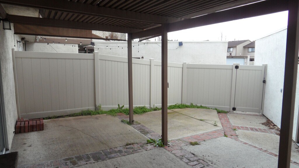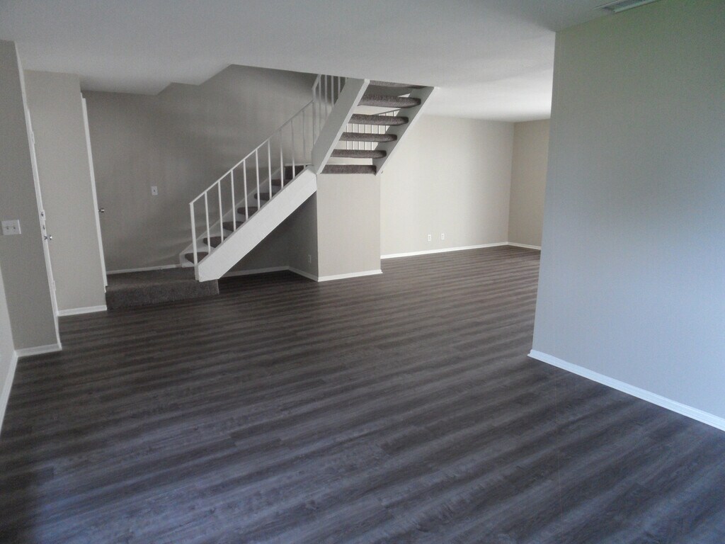Two story 4 BR 2.5 BA Condo, freshly painted in two toned paint, vinyl plank flooring all downstairs and carpet upstairs, and A/C. Large private covered patio, 2 car garage with remote and laundry hookups. The kitchen and downstairs bath have granite countertops. Gas cooking, built-in microwave oven, dishwasher, and large eating area. Living room is a good size and there is extra storage closet under the stairs. The master bedroom has ceiling fan, attached bath with newly refinished shower stall. Upstairs hall bath with tub/shower combo. Secondary bedrooms with ceiling fans. The community offers an association pool & spa, tennis courts, basketball court, and greenbelts. Trash is included.