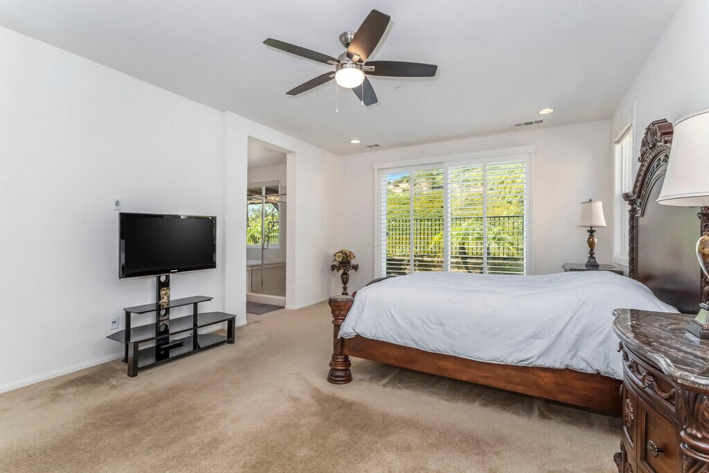 Welcome to this well-maintained and thoughtfully designed home located in the sought-after West Creek community of Valencia. Offering a flexible and functional floor plan, this residence features a rare layout with the primary bedroom and an additional bedroom with its own bathroom conveniently located on the first floor—ideal for guests, multigenerational living, or a home office setup. The main level offers a bright and open living space that flows seamlessly into the kitchen and dining area, creating a comfortable environment for both everyday living and entertaining. The kitchen features granite countertops, stainless steel appliances, abundant cabinetry, and generous counter space. Upstairs, you will find a large loft area that can serve as a second living room, media space, office, or playroom. Two additional bedrooms and a full bathroom complete the upper level. Additional highlights include an attached two-car garage with direct access, an electric vehicle (EV) charging system, in-unit laundry, central heating and air conditioning, a private outdoor patio area, and a solar system to help reduce electricity costs. Residents of West Creek enjoy outstanding community amenities including multiple pools, parks, paseos, playgrounds, and sports courts. Conveniently located near shopping, dining, award-winning schools, and commuter routes, this home offers the best of Valencia living. NO PETS PLEASE.