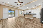 Stunning lakefront gem with a privately fenced yard and oversized screened lanai with picture-perfect water views, boasting 4 beds and 2.5 baths. The home features a massive main bedroom retreat with walk-in closets, formal dining room, and a wide great room that flows into a chef's dream open kitchen. Highlights include an eat-in breakfast nook, black quartz center island, brand new top-of-the-line stainless appliances, triple-door fridge, new induction cooktop paired with a sleek wall oven, temperature-controlled built-in wine storage, complete with white custom cabinetry, and a walk-in pantry. The primary suite is oversized, with an ensuite spa-style bathroom and a huge walk-in shower.