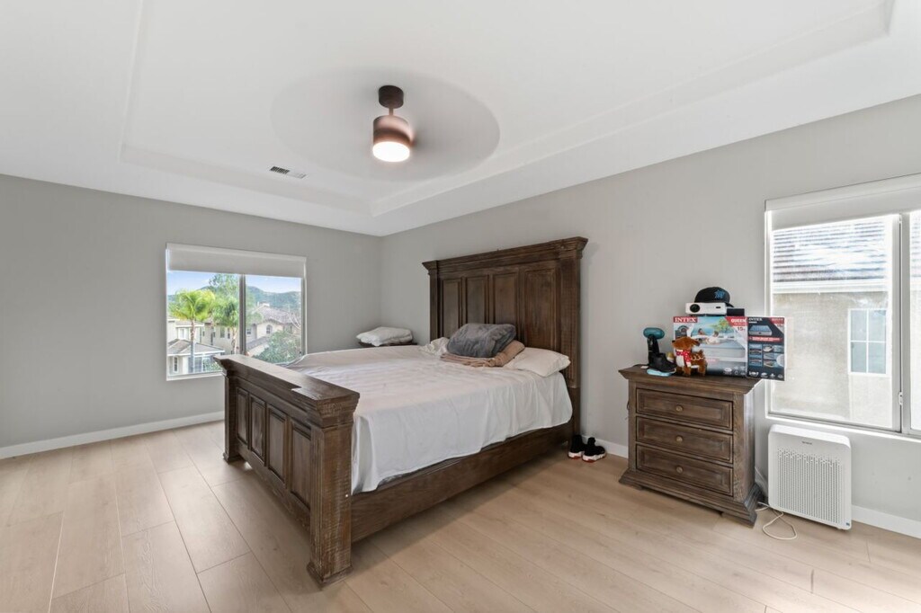 Enjoy the elegance and warmth of 28654 Silverking Trail, a stunning sanctuary nestled in the picturesque surroundings of Santa Clarita, CA. This spacious 2,623 sq ft home offers an inviting retreat with four beautifully appointed bedrooms that provide the perfect backdrop for rest and relaxation. The property boasts two full baths and one half bath, ensuring convenience and comfort for everyone. Gather around the charming fireplace in the expansive living area, where memories and laughter are sure to abound. The well-designed layout seamlessly blends style and functionality, offering ample room for both entertaining and quiet family moments. The modern kitchen, with its generous space, awaits your culinary creations and is sure to be the heart of your home. Large windows throughout the house flood the interior with natural light, creating an uplifting and airy atmosphere. Located in the desirable community of Santa Clarita, you'll enjoy easy access to local amenities, outdoor adventures, and vibrant cultural experiences. Discover the perfect blend of tranquility and modern living at this exquisite Silverking Trail home.