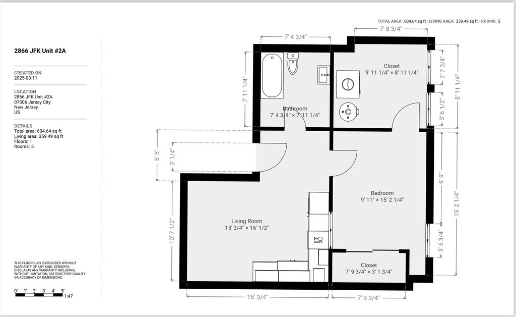 There is currently a 1 Bed 1 Bath Apartment for rent listed at 2866 John F. Kennedy Blvd. It is Available April 16, 2026.
