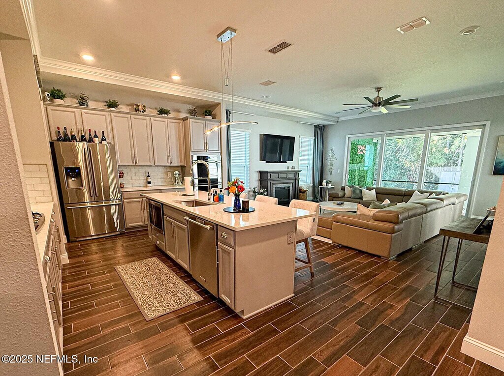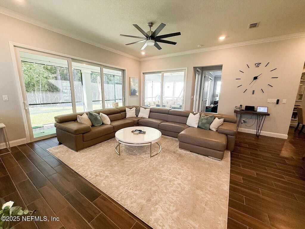 Beautifully appointed and exceptionally spacious,this 4-bedroom,4.5-bath single-family home sits within the desirable gated community of Terra Costa. Offering more than 3,200 sq ft of refined living,this residence blends luxury finishes,smart-home convenience,and seamless indoor/outdoor livingjust 10 minutes from both the beach and St. Johns Town Center. The main level features the master suite,an open-concept design with expansive sliding glass doors leading to an oversized screened-in lanai,perfect for relaxing or entertaining. Upstairs Three bedrooms include private en-suite baths and walk-in closets,while the large upstairs flex suitewith its own full bath and walk-in closetserves beautifully as a guest retreat,office,gym,or media room. A loft offers additional living or workspace options. Designed for everyday comfort and elevated living,the home boasts smart lighting and climate controls,a chef-inspired kitchen with natural gas,a spacious butler's pantry,and a second refrigerator. Additional upgrades include built-in garage storage,energy-efficient systems,and owner-paid solar panels resulting in exceptionally low utility costs. Lawn care is included,and pets are welcome subject to approval. Available unfurnished or fully furnished for an additional fee. Community & Location Terra Costa offers gated security,resort-style amenities,and a peaceful,meticulously maintained environmentminutes from top-rated restaurants,shopping,beaches,and major highways. Rental Details " Available December 1 " Flexible lease terms " No smoking permitted " First month's rent and security deposit due at move-in " Tenant responsible for utilities MLS# 2119355