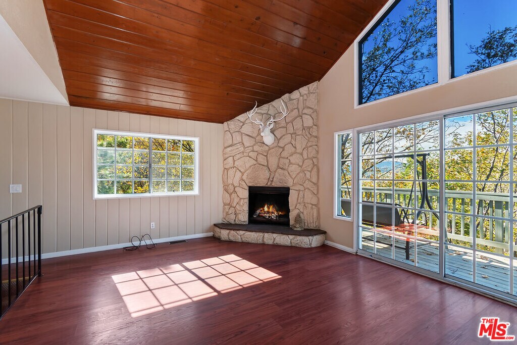This inviting Lake Arrowhead home combines breathtaking mountain views, spacious living areas, and exclusive lake rights for year-round recreation. The main level boasts an open-concept design with vaulted wood-beamed ceilings, expansive windows that fill the space with natural light, and a classic rock fireplace for cozy mountain evenings. The kitchen and dining area seamlessly connect to a large deckperfect for entertaining or relaxing in the crisp mountain air. The lower level features three spacious bedrooms, two bathrooms, and an indoor laundry area for everyday convenience. Multiple outdoor seating areas offer ideal spots for morning coffee, al fresco dining, or unwinding under the tall pines. Enjoy the best of Lake Arrowhead living with easy access to the lake, hiking trails, and local shopsmaking this home the perfect retreat for all seasons. MLS# 25621577