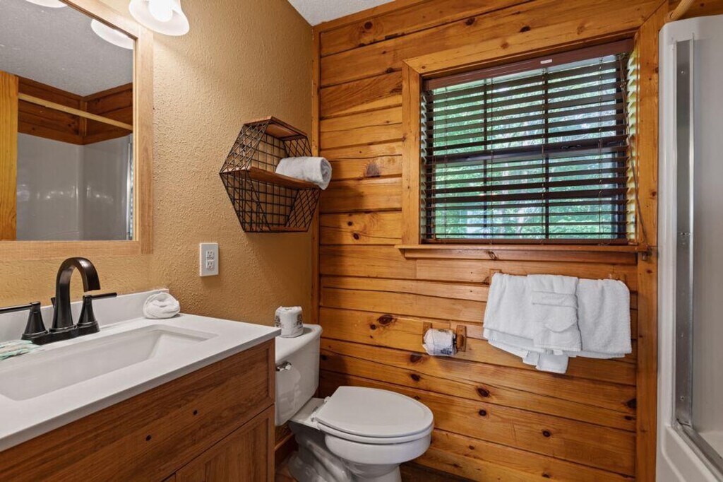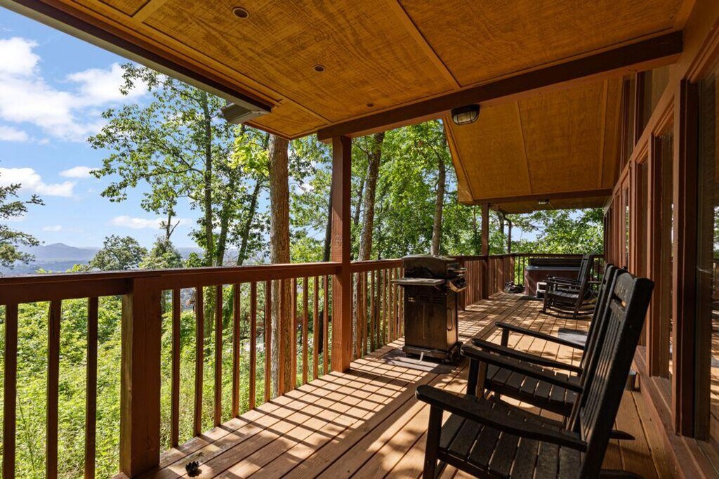 Welcome to The Good Place, a serene retreat nestled in the heart of Sevierville, TN. Perfectly positioned just 15 minutes from downtown Pigeon Forge and offering a traffic-free scenic route to Gatlinburg, this property provides the ultimate balance of convenience and tranquility. The cabin boasts stunning mountain views that can be enjoyed from the comfort of your private deck or while relaxing in the hot tub. Inside, you'll find two spacious bedrooms featuring plush king and queen beds, ensuring restful nights. The open living area is accentuated by a cozy fireplace, perfect for unwinding after a day of exploring the Smokies. The fully equipped kitchen invites culinary adventures, complemented by a dining area ideal for family gatherings. For those who love outdoor cooking, a grill is available on the patio. Enhanced cleaning practices ensure a safe and welcoming environment, while self check-in and check-out offer seamless access. Free parking is available for a maximum of 3 cars. Whether you're here for a short escape or a long-term stay, The Good Place promises a memorable experience with its blend of comfort, convenience, and breathtaking natural beauty. The property is 15 minutes to drive down to Pigeon Forge, easy to access Gatlinburg through back roads to avoid traffic, and have a scenic route. Local attractions include Dollywood and all attractions on the Pigeon Forge strip. Some of the mountain roads can be steep and winding—that's part of the charm of being in the Smokies! Drive cautiously, especially if it’s your first time in the area, and give yourself a little extra time. At least one guest must be 25 years or older. No smoking, no parties, and no pets are allowed. [SI]