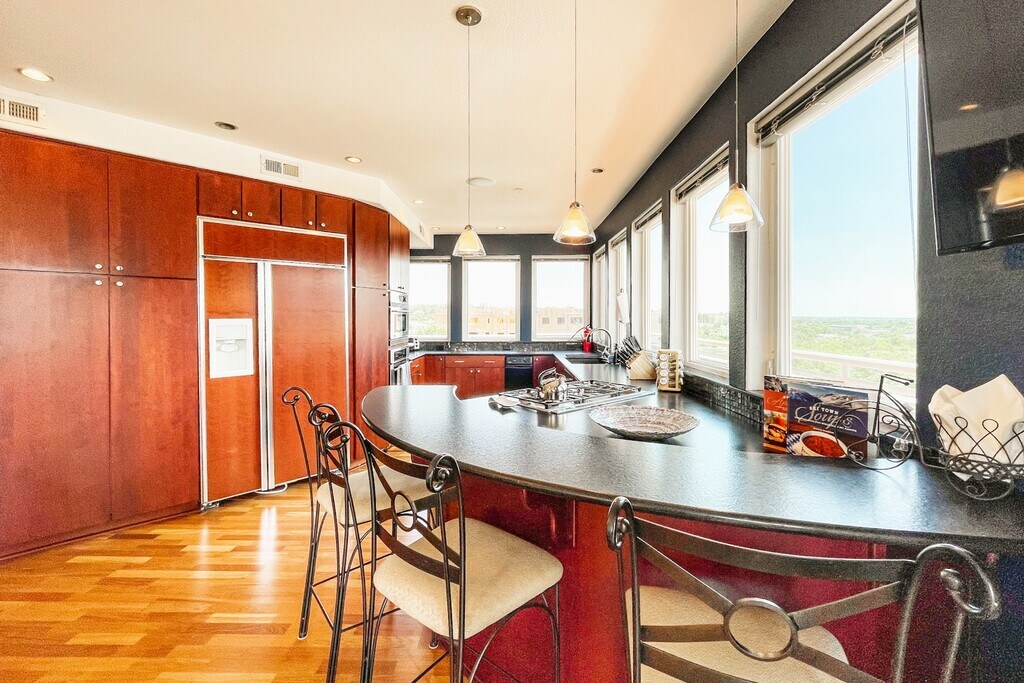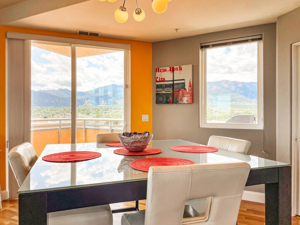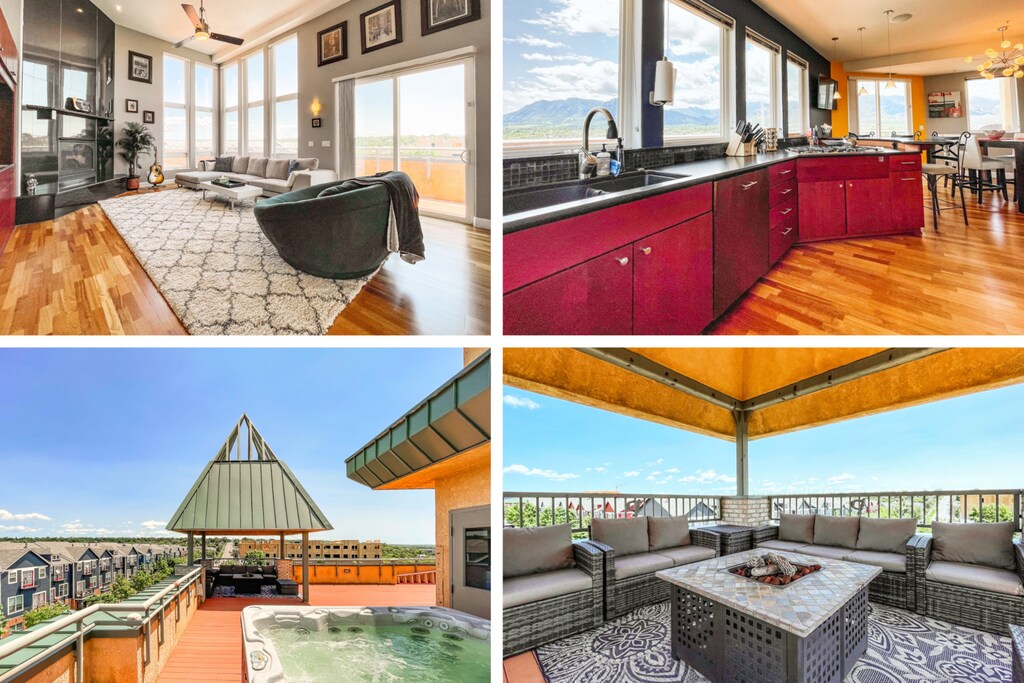Our penthouse is truly one of the most unique spaces in Colorado Springs. Experience one of the city’s most exclusive stays at the Prestwick Penthouse, a stunning two-level retreat with panoramic views of Pikes Peak and the downtown skyline. Floor-to-ceiling windows and cathedral ceilings fill the space with light, while a private 2,000 sqft rooftop deck offers a breathtaking backdrop for romantic getaways, special celebrations, or refined Colorado escapes. Relax in the professionally serviced 10-person hot tub, unwind beside the great room fireplace, or enjoy outdoor dining with a gas firepit, covered seating, and a grill. Two luxurious primary suites feature king beds, fireplaces, spa-style bathrooms, and premium linens, while a third bedroom offers a queen bed with mountain views. The gourmet kitchen includes cherrywood cabinetry, granite counters, and full cookware. Additional amenities include a private elevator, ultra-fast WiFi, dedicated workspace, and in-home laundry. Walk to restaurants, wine bars, cafés, and galleries, or drive minutes to Garden of the Gods, The Broadmoor, and Cheyenne Canyon. Looking for a longer stay? Ask about our flexible weekly and monthly rates designed for work travelers and families between homes.