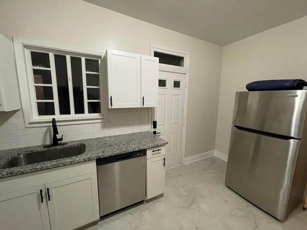 Spacious unit recently renovated with modern finishes: new flooring,fresh paint,updated kitchen with stainless steel appliances,and a stylish bathroom. Features off-street parking,generous front patio,full sized laundry off the main living area,A/C and forced air heat. All appliances included. Washer and Dryer included. Quiet neighborhood walking distance to restaurants,parks,pubs and more. Owner pays water,tenant pays all other utilities.